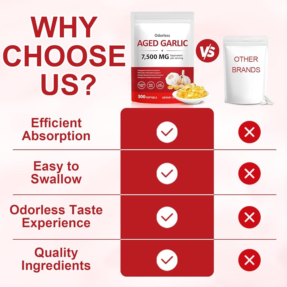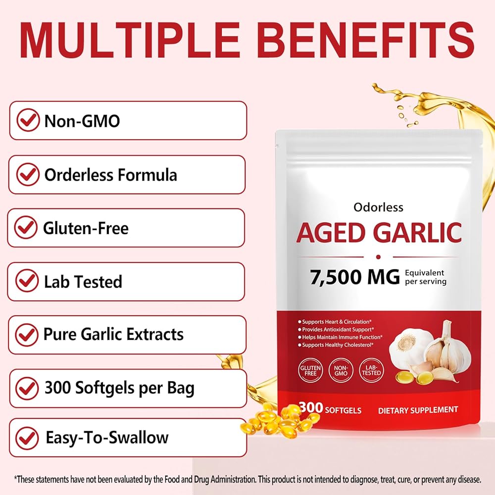 Odor-Free & Discreet to Take: These aged garlic extract capsules use odorless aged garlic extract, so no lingering garlic breath or aftertaste.