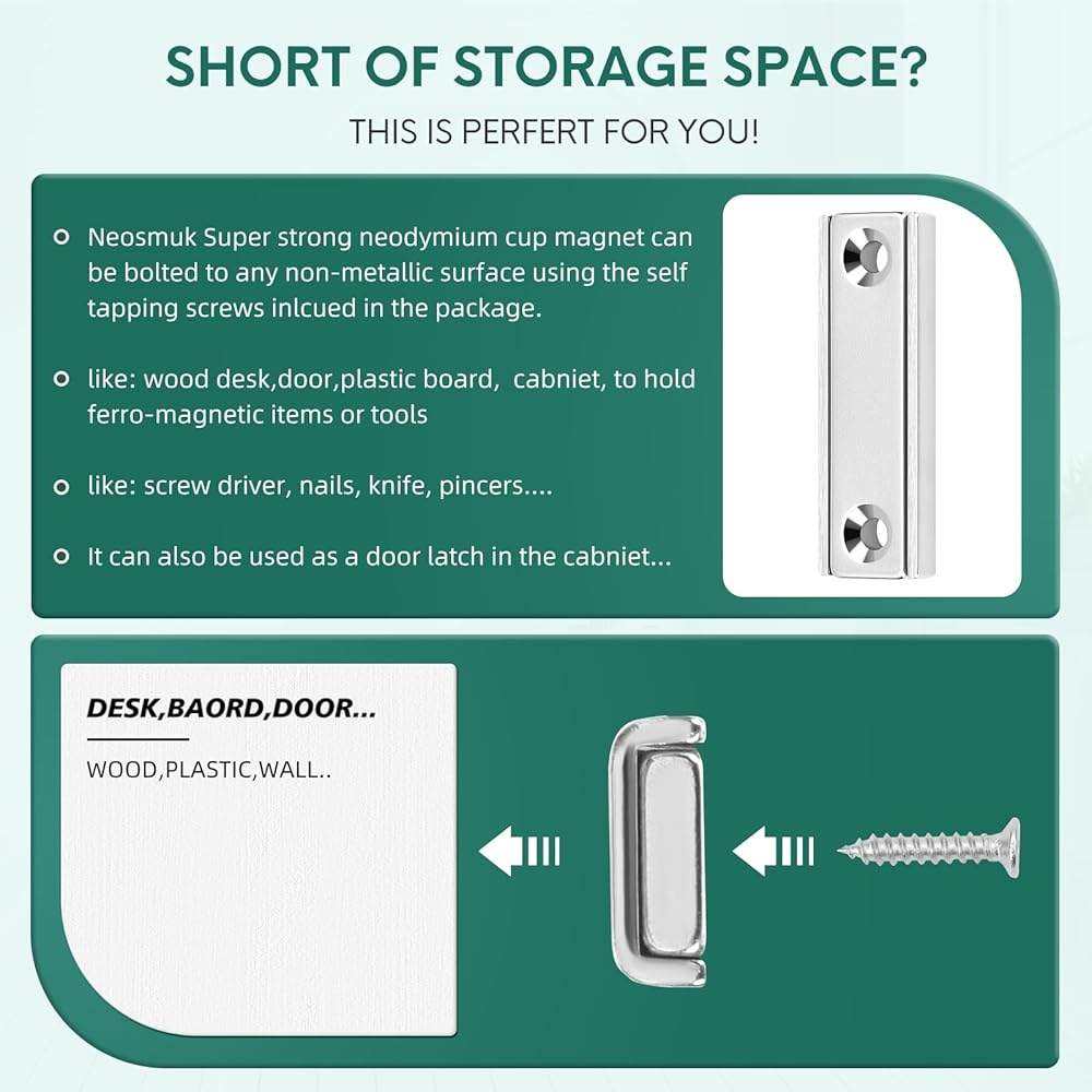 • ✅ Super Strong Industrial Magnets with Screws- Neosmuk magnets with screws are made from industrial-grade neodymium rare earth material, delivering up to 70lbs of holding power. These heavy duty magnets with countersunk holes mount securely on metal or non-metal surfaces without slipping or breaking. Ideal for tool organization, equipment mounting, and heavy-duty projects.