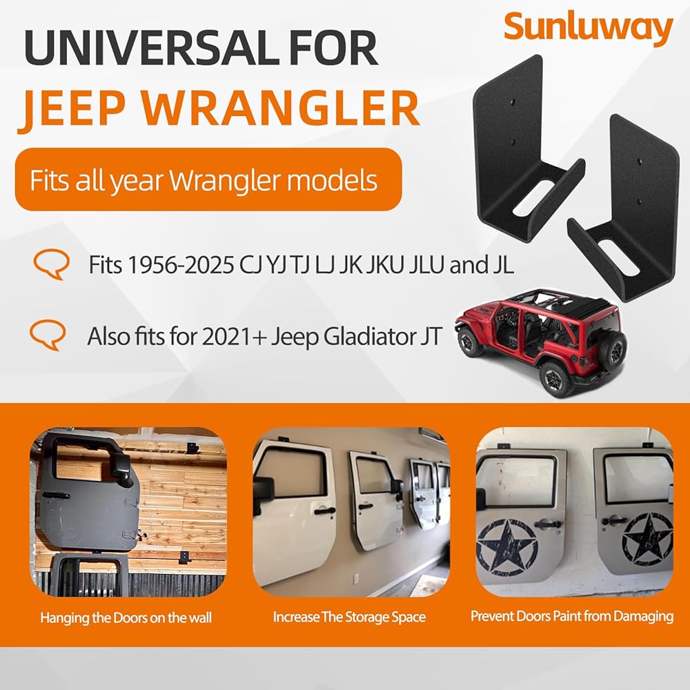 Fit for 1956-2025 Jeep Wrangler CJ YJ TJ LJ JK JKU JL JLU & 2021+ Jeep Gladiator JT , solid built to hold your 60 lb. Doors