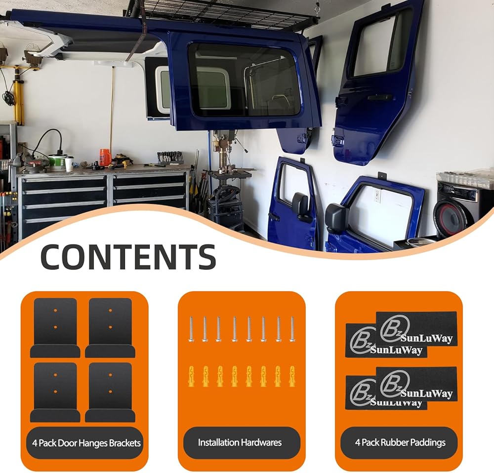 PREVENT SCRATCHES: Prevent damages to your Wrangler's doors during the summer months by keeping them up off the floor with the door storage hangers, works with rain guards & will not damage your window seals. Comes with Rubber Pads will ensure no damge to your window seals.