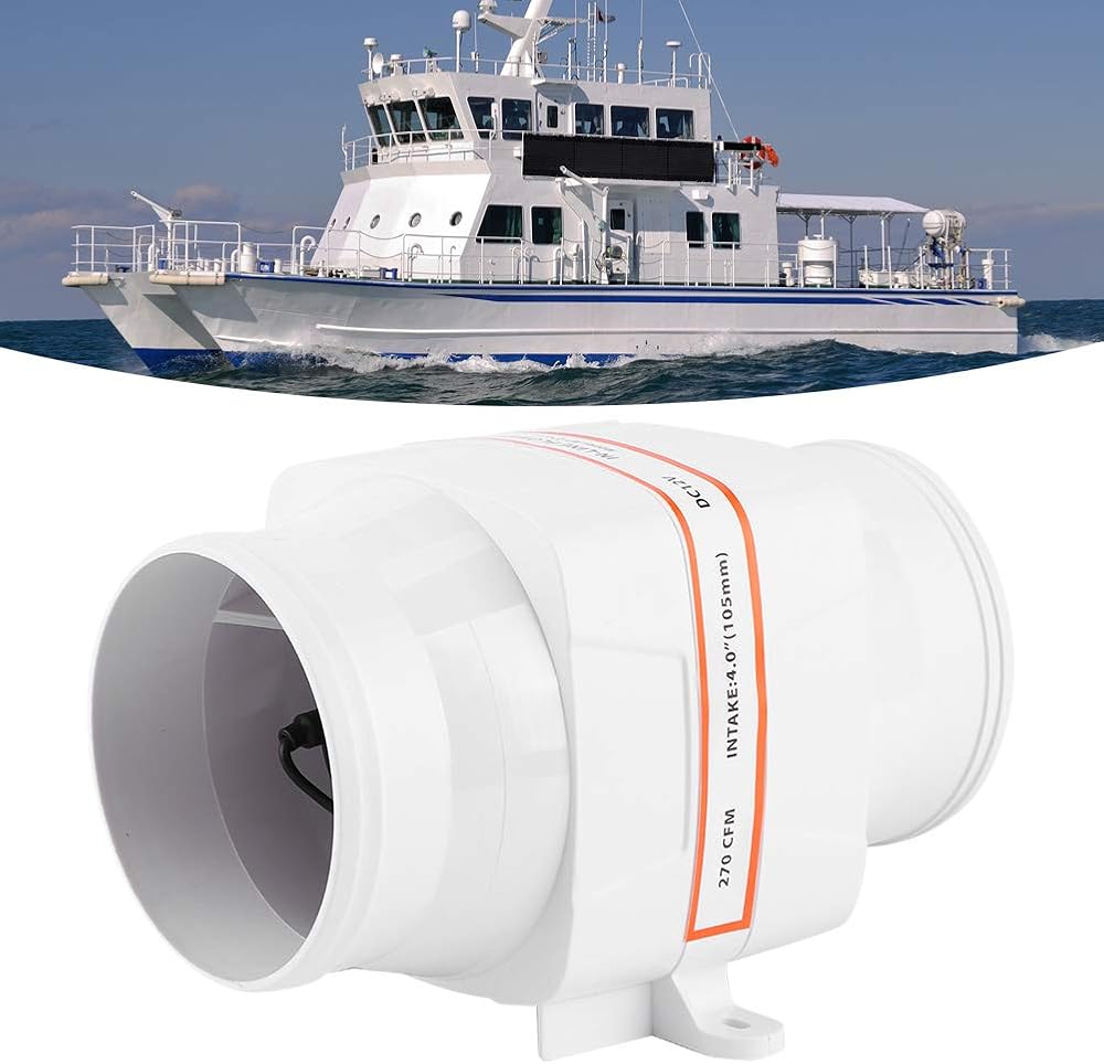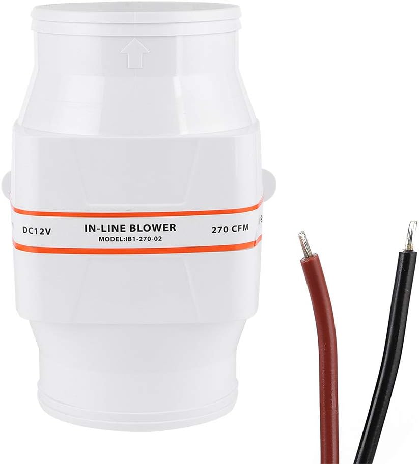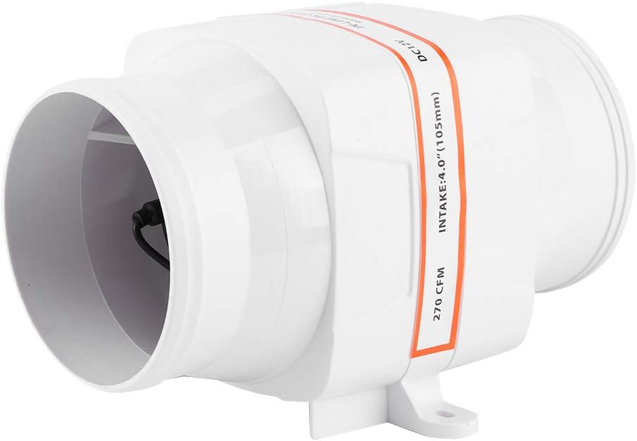 4in 270CFM Bilge Air Blower, in Line Marine DC Electric Fan, Volume Air with Sealed Motor Shaft, White ABS Plastic Construction for Boat Compartments, Galleys and Bilges
