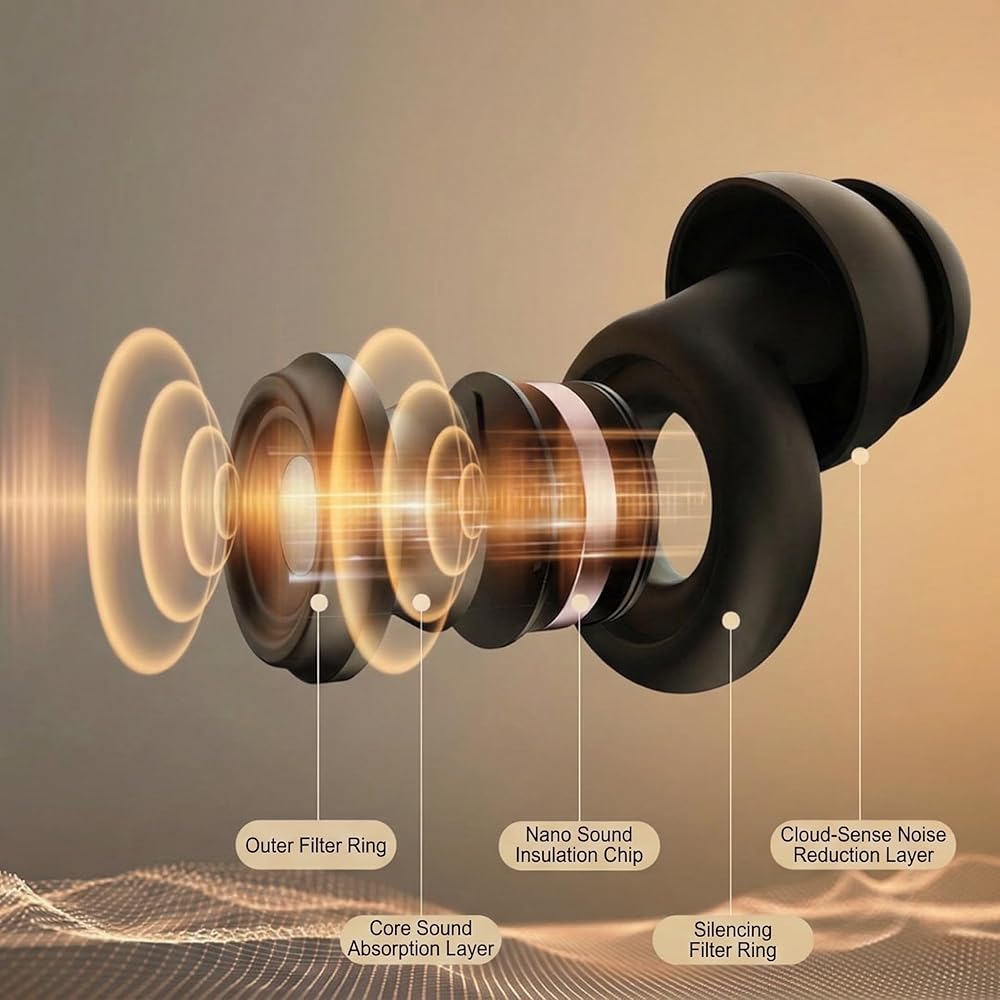 50dB Max Noise Reduction & Clear Sound Preservation:Boast powerful 50dB noise reduction with advanced acoustic filtering technology. Effectively block disruptive sounds like snoring, traffic, or office chatter while retaining natural sound clarity. No distortion for concerts, conversations, or important alerts—ideal for deep sleep, focused work, or live music events.