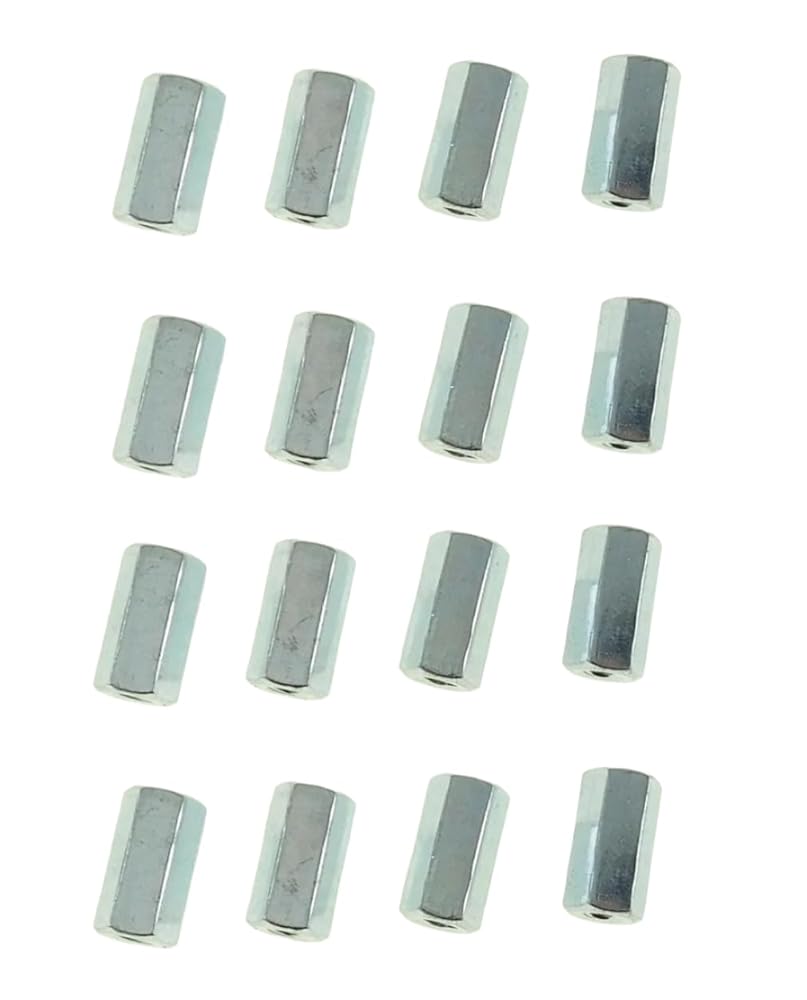16 Pack 8-32 X 5/8" long, 5/16 across the flats steel coupling nut with zinc finish.