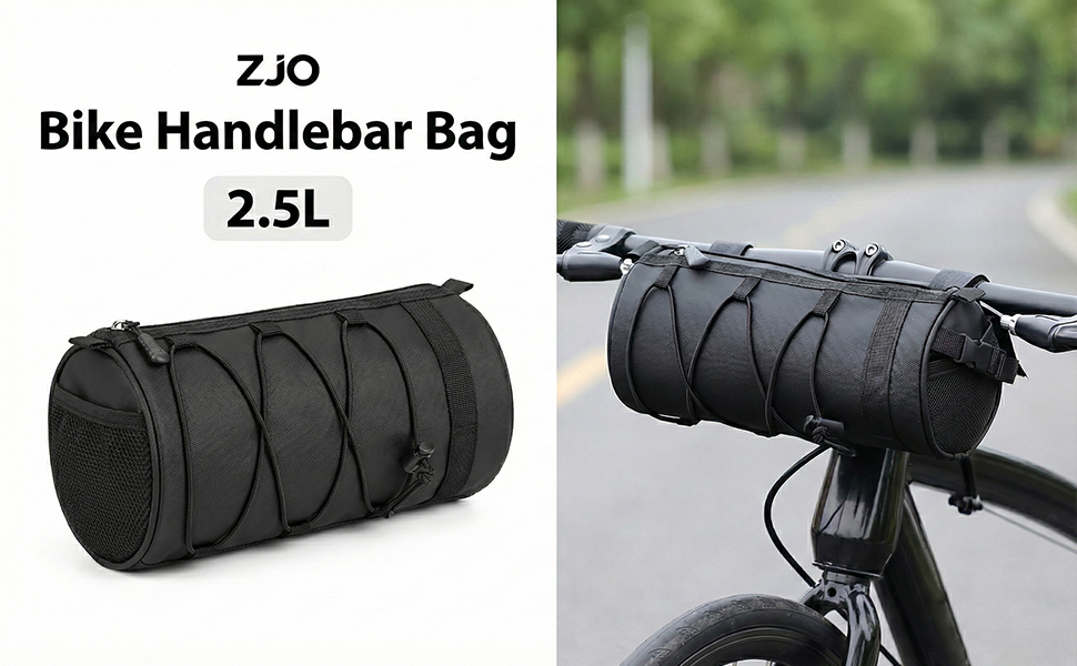 2.5L Bike Handlebar Bag, Waterproof Bicycle Front Bag with 2-Point Secure Straps, Lightweight Bike Pouch for Mountain Road Bikes and Commuting, Black 9.25 x 4.33 inch