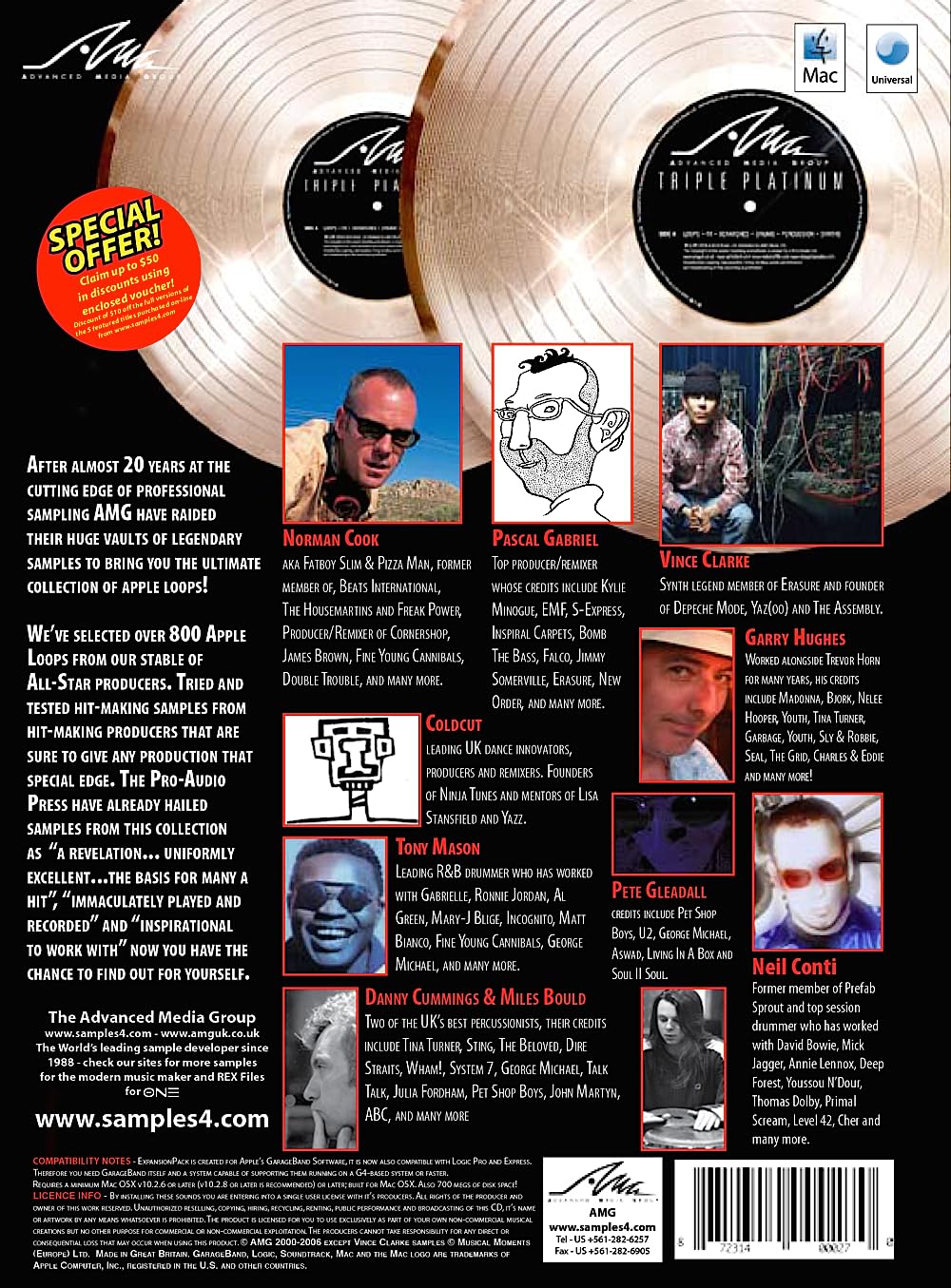 Over 800 Apple Loops from some of the greatest sample producers of all time. Sounds featured include drums, percussion, dance samples, vocals, synths, FX and much more. Over 500 of the loops are completely exclusive to this collection, the remaining 200-odd are taken from existing Apple Loops CDs in our collection.