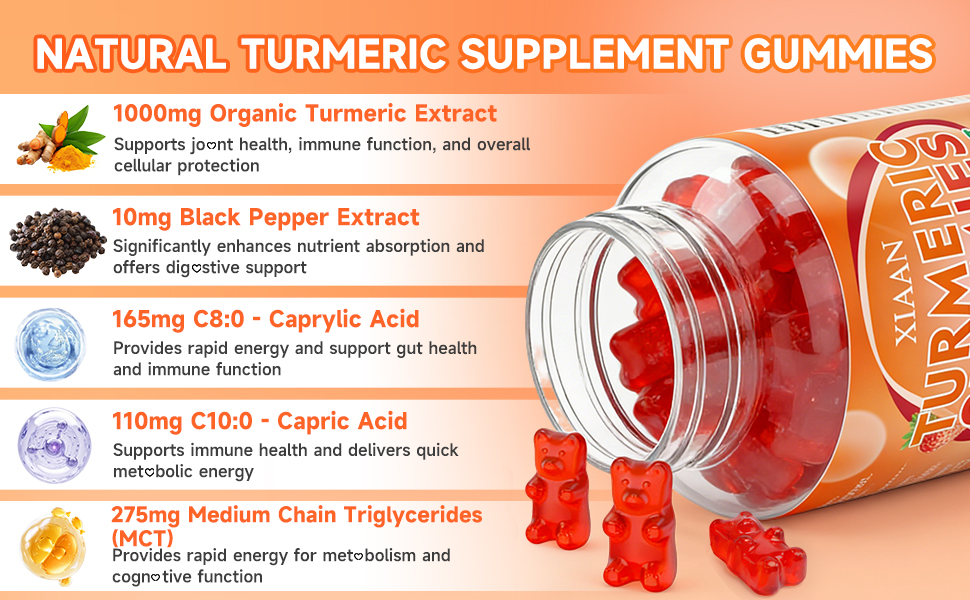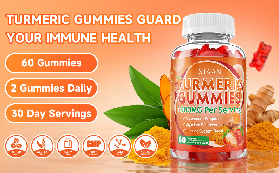 Delicious Turmeric Supplement - Swap pills for tasty turmeric gummies! This easy-to-chew turmeric curcumin gummie make daily nutrition effortless while supporting long-term vitality. Perfect for busy lifestyles.