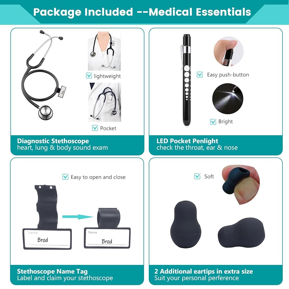 ✅Thoughtful Add-Ons -Diagnostic stethoscope comes with multiple sizes spare ear pieces, an ID stethoscope tag, and a pocket penlight. Double-Sided stethoscope is an essential tool- become the trusted companion for professionals seeking reliability and precision, ensuring you're always prepared for the next challenge.