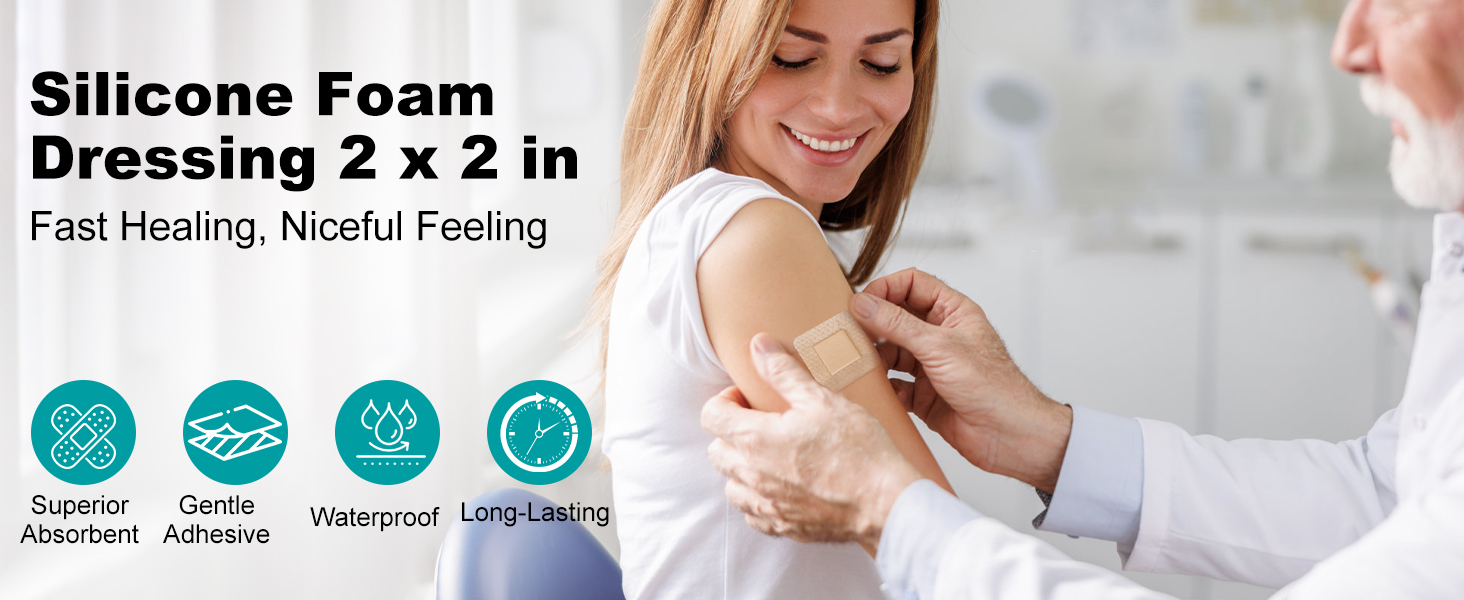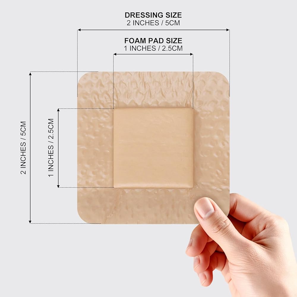 ✅ Our silicone foam dressing 40 packs per box, individually packed, easy to use and store. Dressing size 2x2 inch with border, absorbent pad size 1 x 1 inch. No latex, just silicone, resting gently on your thin skin, not irritating your skin, preventing secondary damage, increasing comfort and enhancing healing.