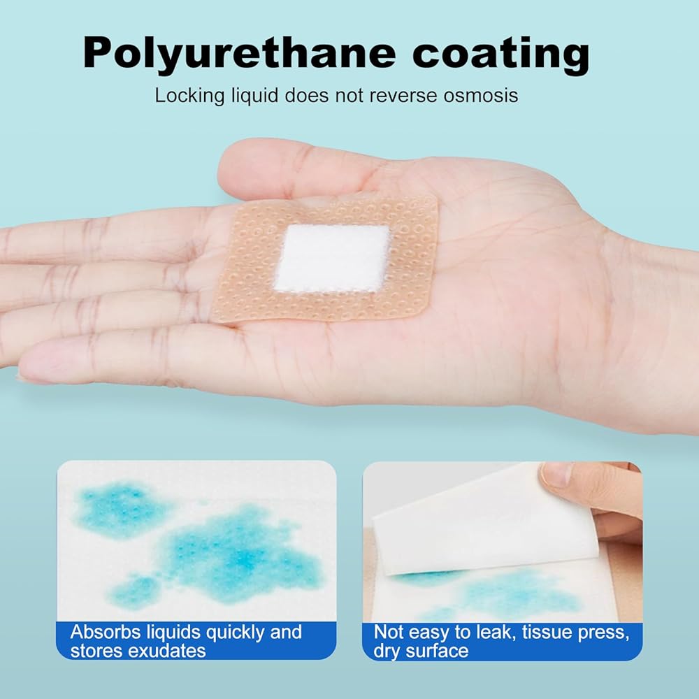 ✅MAKE LIFE EASIER - The foam pads with a unique 2mm thick foam core layer maximize the absorbent to 15 times, SAF layer to lock the exudates avoid maceration, nonwoven layer disperse exudate, more absorbent than traditional bandage gauze, no need to change frequently