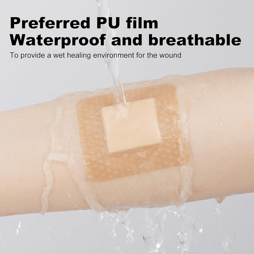 ✅WATERPROOF PROTECTION - Semi-permeable PU film layer is waterproof and breathable, which provides a liquid barrier while allowing the passage of oxygen and water vapor, effectively protect the wound healing process