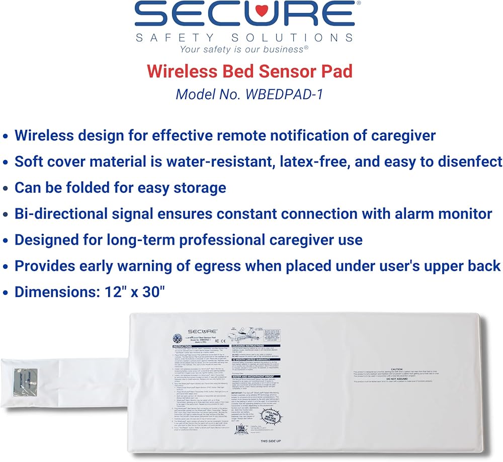 The Wireless Patient Monitoring System is an effective remote care fall prevention aid for caregivers that monitors elderly adults by alerting nurses or caregivers when a patient attempts to leave the alarm pad for bed, chair, wheelchair, or floor mat in the room. Choose from a cordless bed, chair, or floor mat sensor to pair with the wireless patient alarm monitor. The wireless alarm monitors fall-risk patients in medical settings such as nursing homes, hospitals, and at home. Thousands of smart caregivers across the globe use our wireless patient monitoring system as an effective fall alert detector for elderly patient egress at the earliest stages. This wireless bed alarm system helps remotely monitor patients, seniors, elderly, special needs, and those with dementia. Prevent falls and wandering with this patient monitor remote bed alarm. A reliable bi-directional wireless connection between the alarm monitor and transmitter(s) allows caregivers to know they will receive an alert when the fall-risk patient tries to leave the bed or chair or exit a room. Purchase this elderly fall alert system with confidence knowing that Secure Safety Solutions bed alarms for elderly have been trusted by thousands of nurses, caregivers, care homes, nursing homes, assisted living facilities, hospitals, and other health care professionals since 1991. Developing effective, high-quality elderly fall prevention, anti-wandering products and other patient safety products is our passion. We offer the industry's best bed alarms and fall prevention for elderly, chair alarms, bed motion sensor, door alarm. and many other safety products to meet the needs of fall-risk individuals. The Secure Wireless Patient Monitoring System advances falls management alarm monitor technology by employing the most dependable 2.4GHz bi-directional wireless communication between the sensor pad transmitter and caregiver receiver.