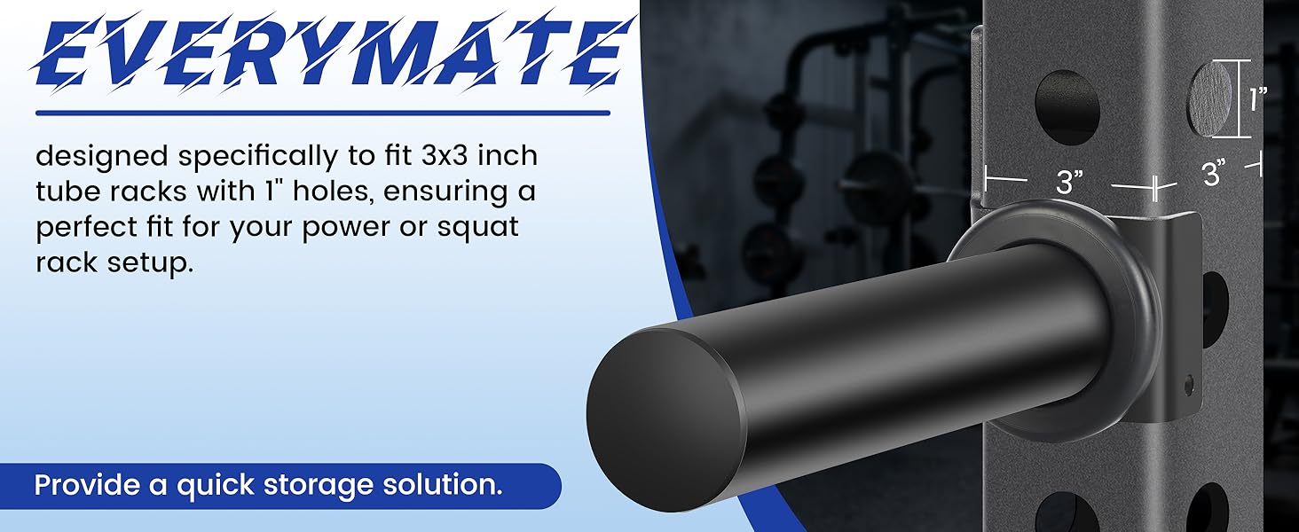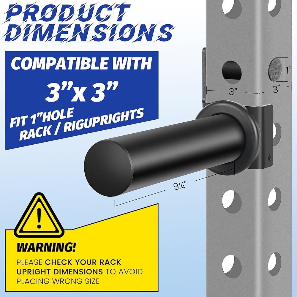 • 【Fit for 3x3 Inch Racks】Designed exclusively for 3x3 inch power racks and squat racks with 1" holes, compatible with 2-inch diameter Olympic weight plates. Features a 9.2-inch sleeve length to securely hold multiple weight plates, ideal for home gyms, garage gyms, and commercial fitness facilities—no more worrying about mismatched accessories!