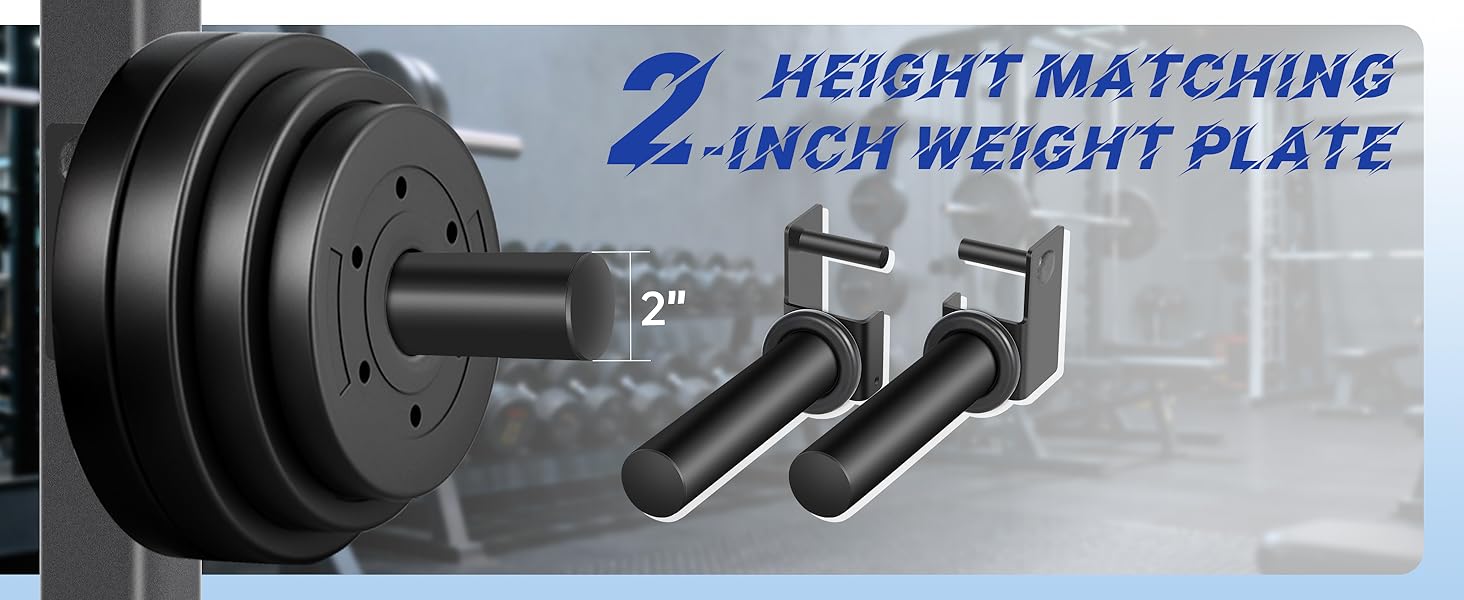 • 【Space-Saving & Weight Plate Storage】The ergonomic horn design keeps your Olympic weight plates off the floor, eliminating tripping hazards and cluttered workout spaces. Keep plates neatly organized and within easy reach—load and unload quickly during training, making your gym area clean, professional, and safe for everyone.