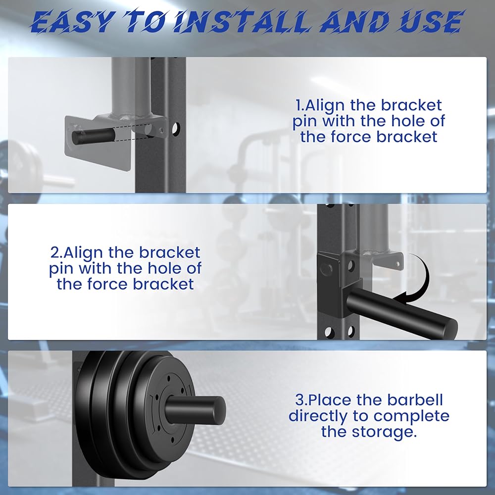 • 【Tool-Free Installation & Easy Operation】No drilling, welding, or complex tools required! Simply slide the locking pin into your power rack's hole and swing down to lock in place. The lock-in design ensures a secure fit while making installation, loading, and unloading a breeze—even for beginners.