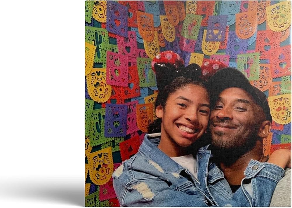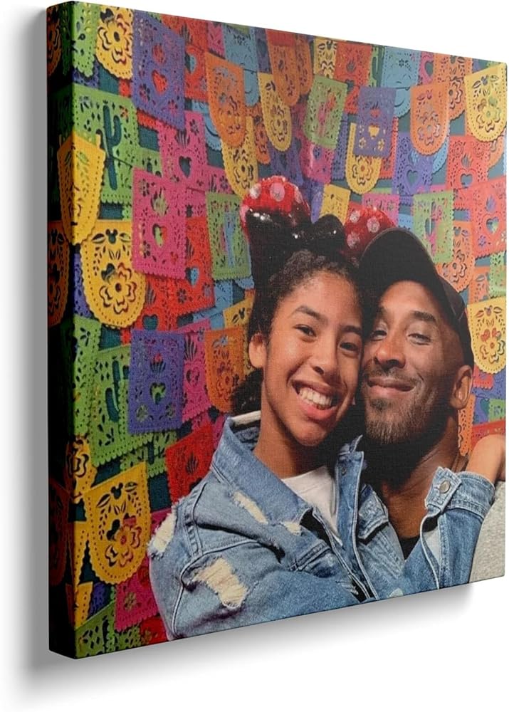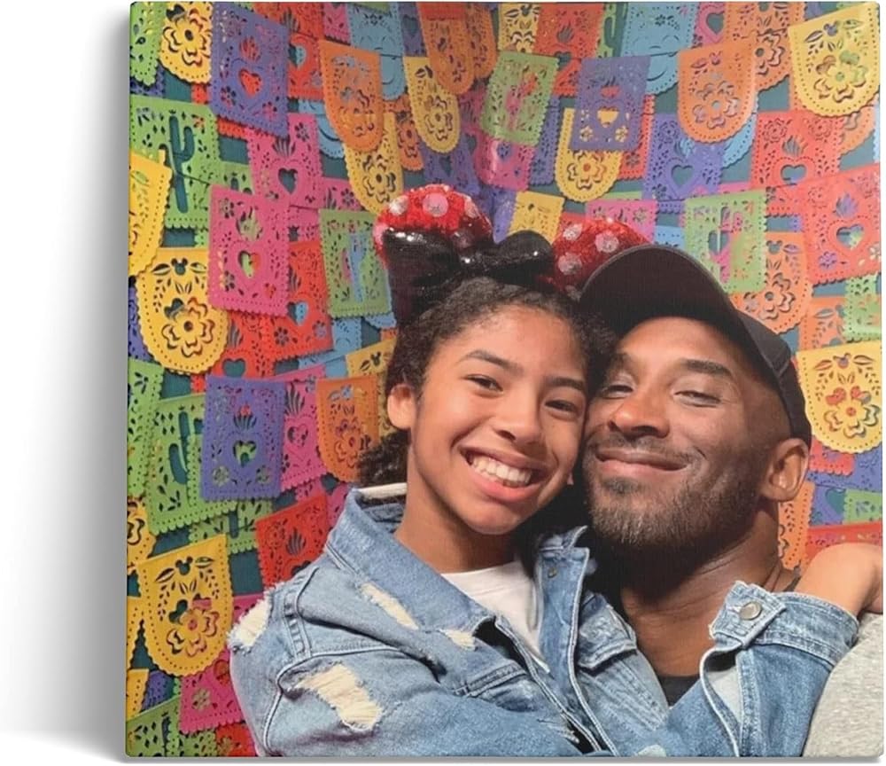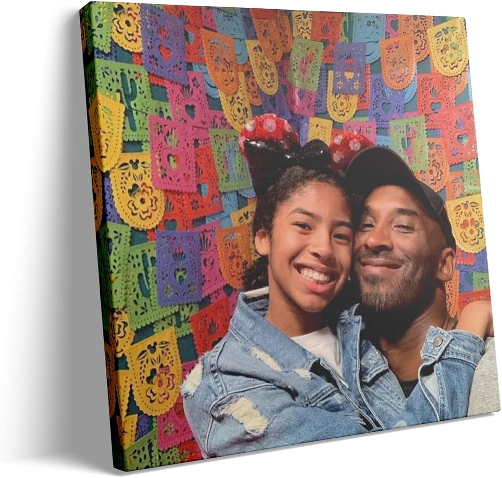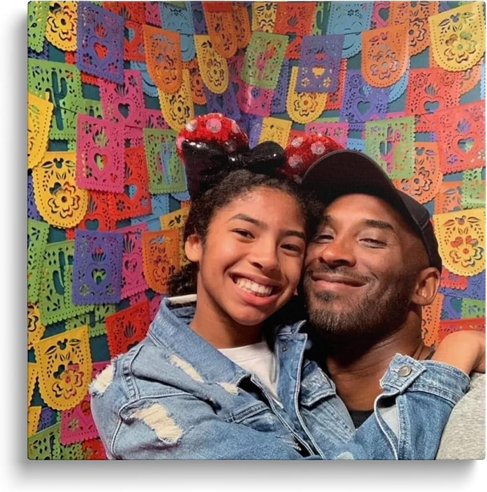 Kobe Canvas Wall Art Decor - 16X20 inch Vibrant Lakers Championship Portrait with Trophy, Dynamic Cartoon Style Artwork, Iconic Tribute for Basketball Fans Home and Office Wall Decoration