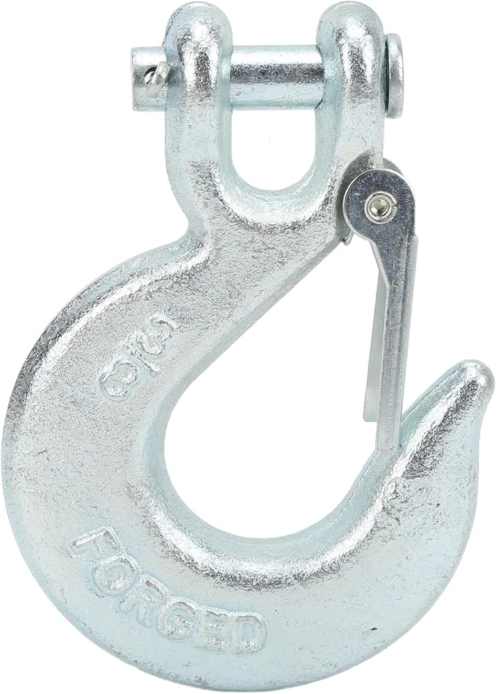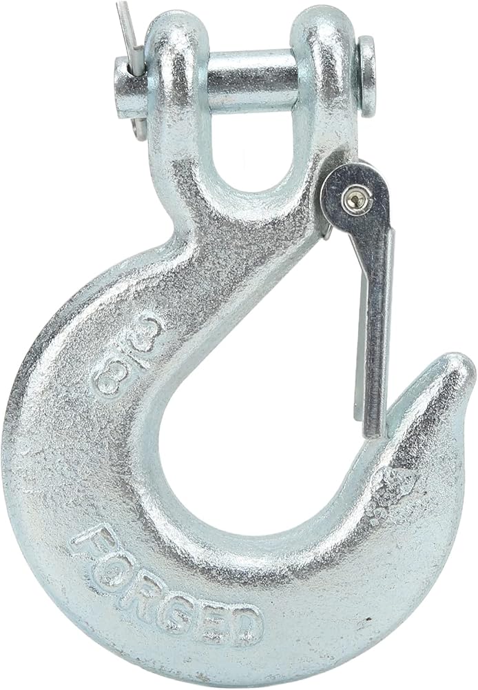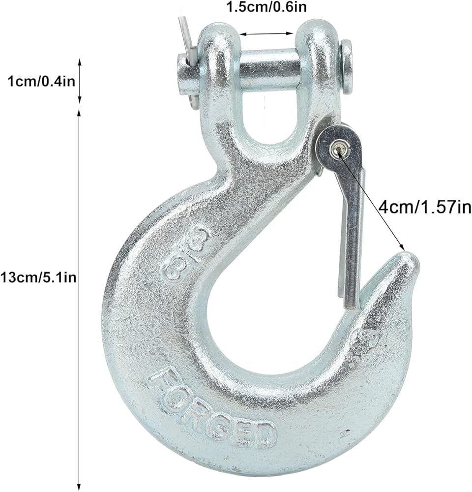 • [SPRING LOADED SAFETY LATCH] Equipped with a keeper pin and safety latch, this hook provides a secure connection for safety chains between trailers and towing vehicles. The spring-loaded mechanism ensures the chain stays firmly in place, preventing accidental detachment even when the load slackens.