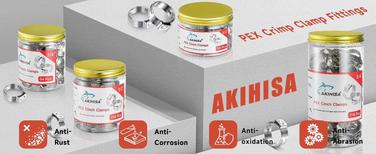 【54PCS VALUE PACK & 2-YEAR WARRANTY】 Includes 54 pieces of 3/4 pex crimp rings packed in a compact storage jar, keeping your toolbox organized without the mess of plastic bags. We stand behind the quality of our stainless steel cinch clamps with a 2-Year Warranty. Buy with confidence knowing your plumbing projects are backed by professional support