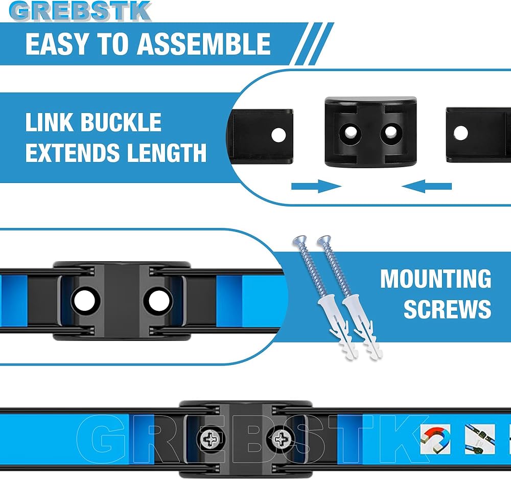 Magnetic tool holder set includes 4 pieces of 12 inch magnetic strip holders, comes with screws and other accessories. Multiple magnetic strips can also be connected for expansion.