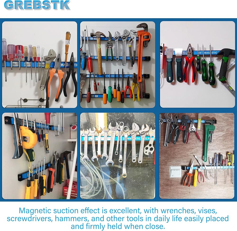 The heavy-duty magnetic tool rack is efficient magnetic tool organize for garages, workshops, kitchens. You can use them hold knives and cutlery in your kitchen, or screwdrivers, saw blades in your workshop, or socket and ratchet handle in your garage.