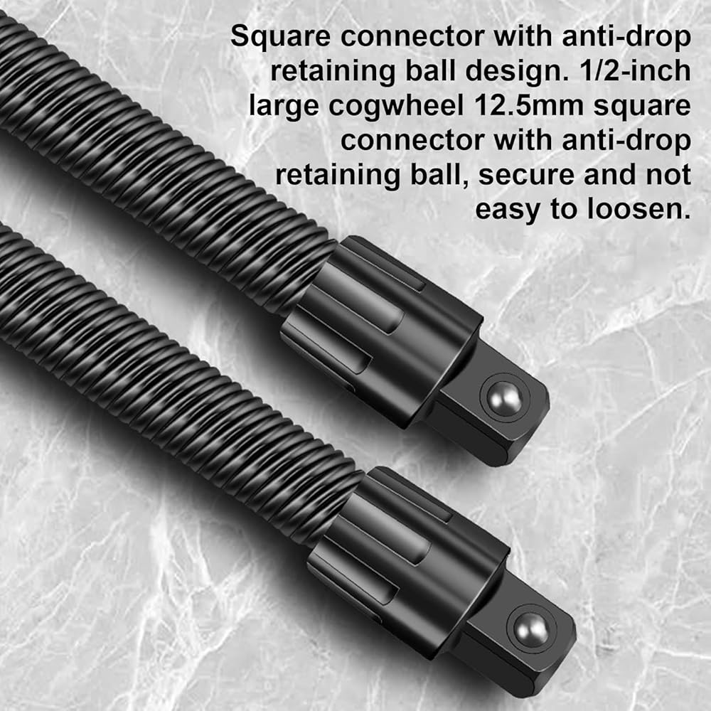 The socket extender is a crucial adapter for any DIY project or automotive repair task requiring precision in tight spaces. Featuring a bendable design and spring-loaded mechanism, this 1/2 inch socket extender offers flexibility and stability when used with a wrench or electric drill. Its sleeve construction ensures smooth functioning while enhancing grip and control, making it ideal for hard-to-reach areas. Whether you are working on automotive maintenance or assembling furniture, this tool adapts effortlessly to your needs. The socket extender is a reliable addition to your toolkit, ensuring efficiency and convenience during complex tasks. Works with various sockets, it simplifies tasks in confined areas without compromising performance. Enhance your work experience with this versatile socket extender designed for practicality and ease of use.