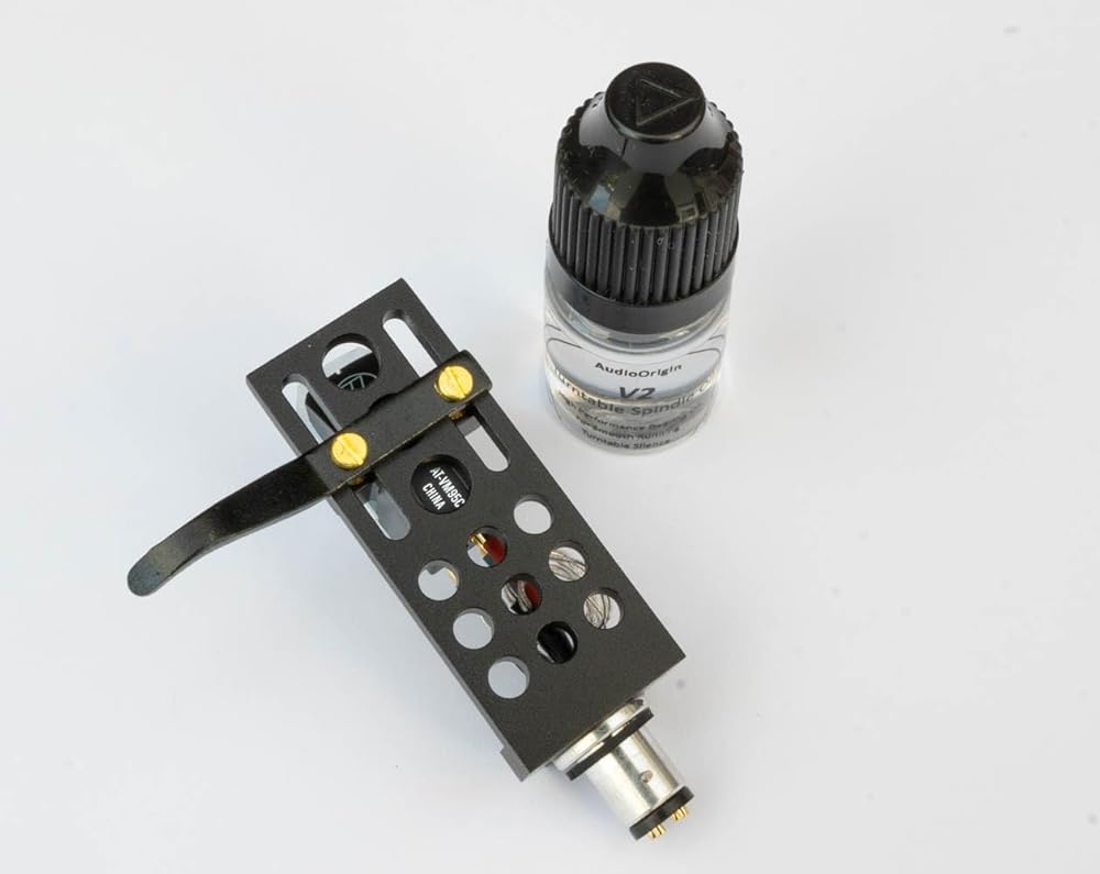 Solid Aluminium Headshell with AT-VM95C Cartridge and stylus fitted using Silver Litz cartridge wires with gold tabs. V2 Lubricant suitable for all Turntables except greased