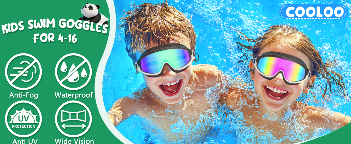 【Customer Service】The pool goggles set includes: kids swim goggles with earplugs×2, nose clips×2, mesh bag×1, and user manual×1. Perfect for boys/girls with long or curly hair and are perfect for swimming at the beach, family pool parties, and other occasions. COOLOO offers a 90-day quality assurance - Contact us promptly for any issues—we'll resolve them quickly.