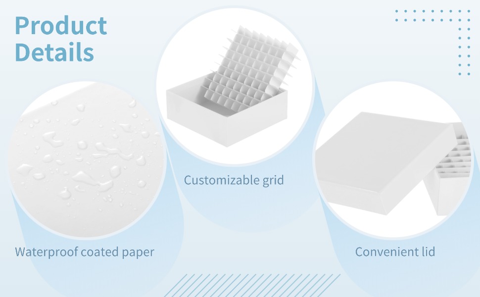 Robust Material: Waterproof coated paper material resists moisture and holds up under low-temperature conditions; long-lasting structure keeps boxes reliable through repeated freezer cycles; make sample storage consistent and dependable
