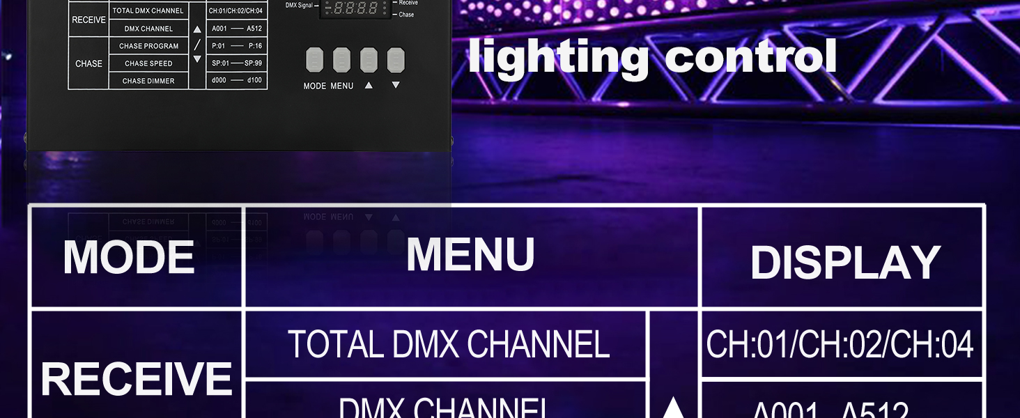 【Digital Display】With the LED display, This function not only allows you to quickly adjust the chasing program, but also monitor channel activities and their levels in real time and efficiently. The clarity and readability of the LED display make operation more convenient and enhance the overall user experience