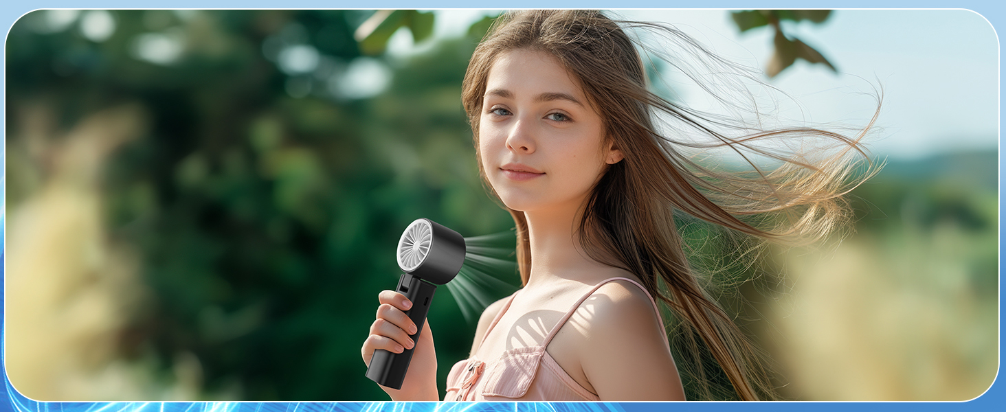 【Super Powerful Handheld Fan】-The combination of a upgraded, high-efficiency motor and state-of-the-art turbo focuses and amplifies the wind power, generating a mighty airstream. The maximum wind speed can reach 9m/s. The highest rotation speed of the handheld fan is three times that of a regular personal fan, reaching up to 105000 RPM. Whether you're on a busy commute, relaxing at home, or enjoying outdoor activities, it delivers a refreshing gust to cool you down