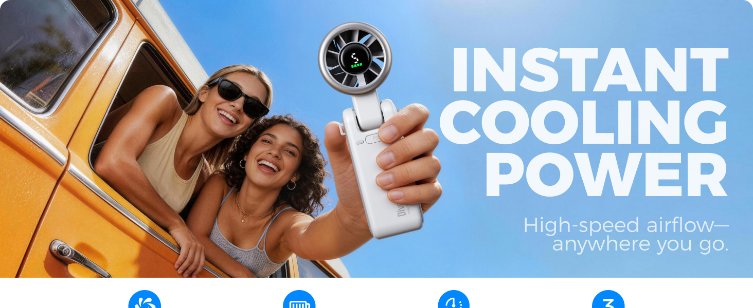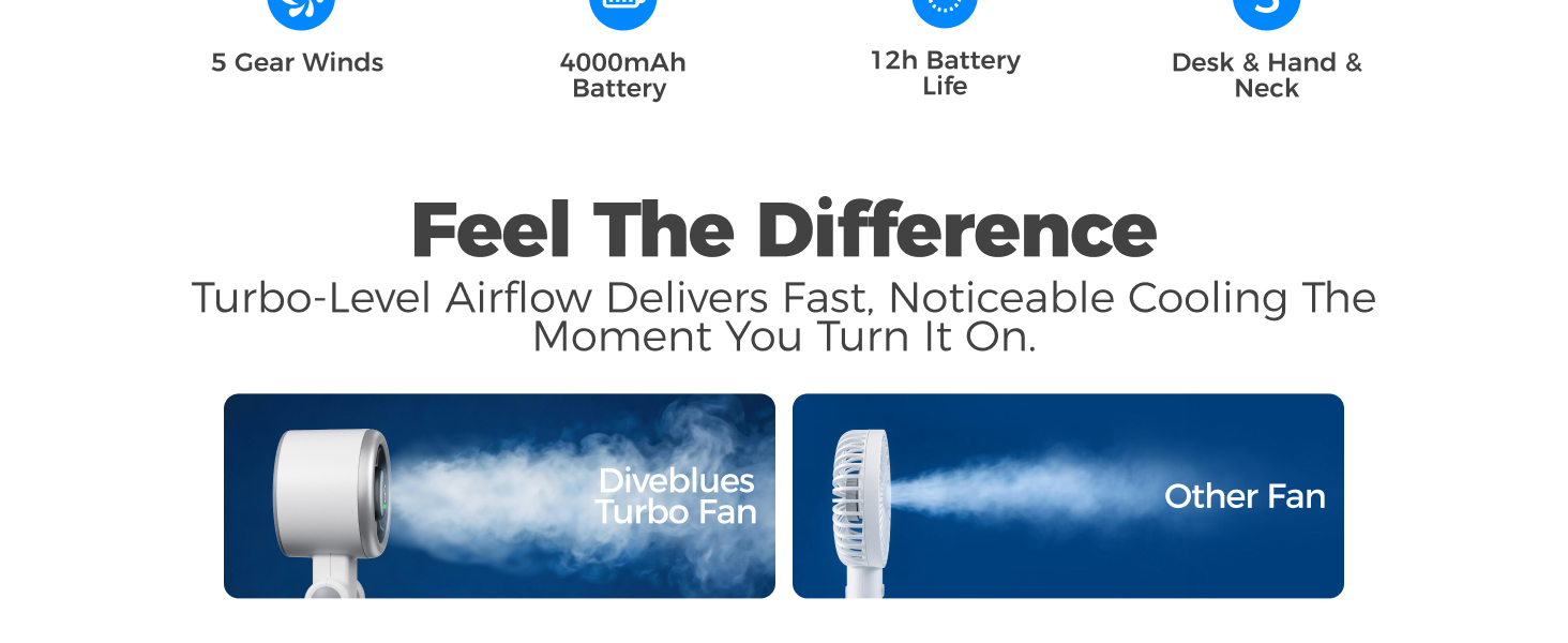 Ultra Powerful Wind, Rapid Cooling: Stay cool on the go with the JetForce handheld turbo fan! Featuring Aero-Turbojet technology, a high-speed three-phase brushless motor, and a 5-blade design, this handheld fan delivers a maximum wind speed of 10m/s—3x more powerful than general fans.