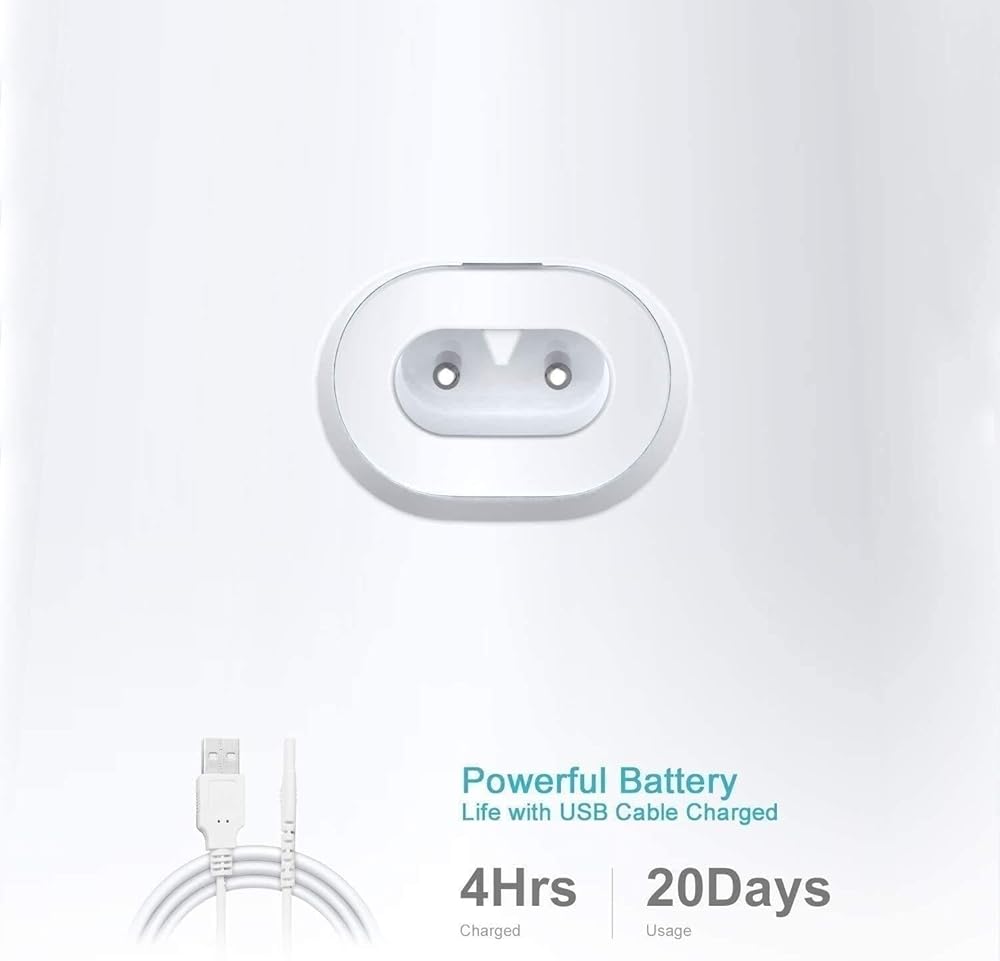 Featuring the 300ML tank and 1400mAh rechargeable battery, cordless water flosser can offer you the best using experience while clean your teeth. You don't have to worry the water is using up, or the battery is dead while travel. Only need charge 4 hours for 15-20 days using.Build-in 1400mAh BatteryWith built-in 1400 mAh rechargeable battery, Charging 4 hours for 16-20 days using.360 Rotatable DesignWith the 360-degree rotating nozzle, you can clean your teeth from different angles as you like.300ml Water Tank with IndicatorUpdated 300ml water tank with special design can help you avoiding splashing water. and to help you check water volume, we put a blue light in the water tank.Thank you very much for your trust and support, and I wish you a happy life.
