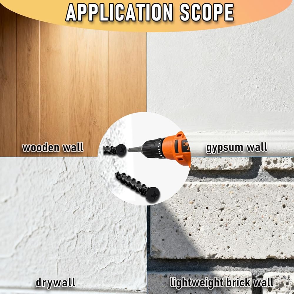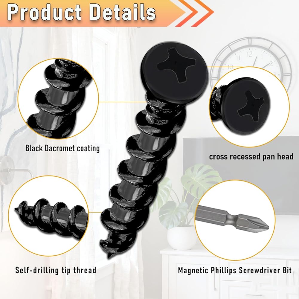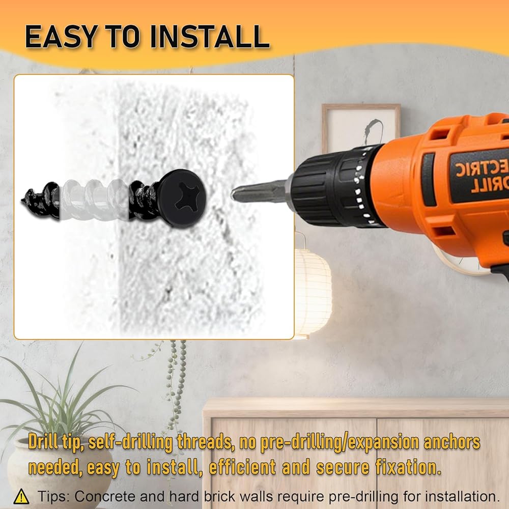 Transform your mounting projects with these versatile OywhC drywall anchors and self-drilling screws. The 100-pack set features 1/4 x 1-1/2 inch black-coated pan head screws crafted from durable alloy steel, delivering exceptional strength and corrosion resistance. These anchors excel in multiple applications, providing reliable support for items mounted to drywall, wood, and masonry materials. The innovative self-drilling design eliminates the need for pre-drilling in most situations, streamlining your installation process. With impressive holding power of up to 50 pounds in drywall and 200 pounds in concrete, these anchors ensure your mounted items stay securely in place. The pan head design offers a clean, professional appearance while maintaining superior load-bearing capabilities. Perfect for hanging shelves, mounting fixtures, or tackling various construction projects, this comprehensive set provides the reliability and versatility needed for both professional contractors and DIY enthusiasts.