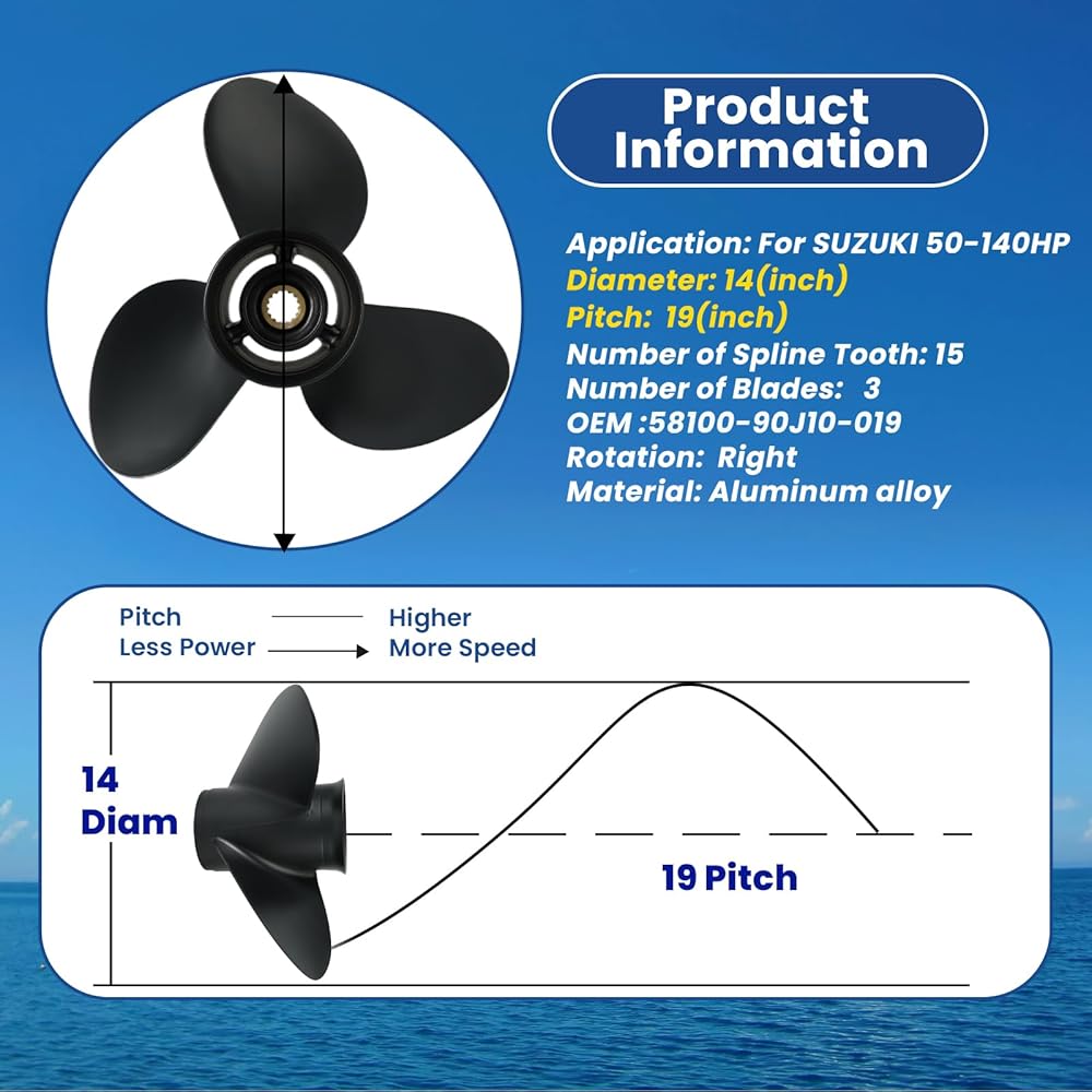 【Easy Installation】 Designed for a seamless, perfect fit, this propeller is easy to install and ready to use straight out of the box. Compatible with Suzuki outboard engines, it ensures smooth performance and speed optimization without the hassle. Whether you're upgrading or replacing, this propeller saves you time and enhances your boat's overall performance.