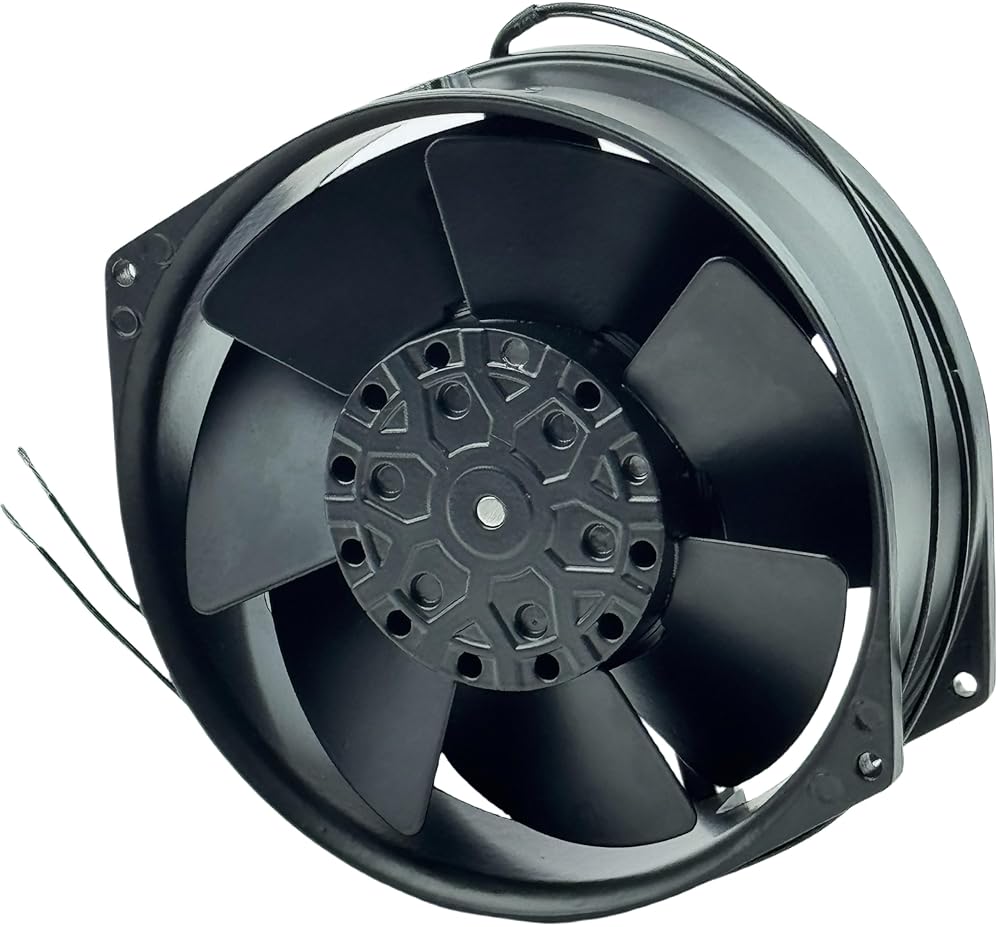 The Metal Heat Resistant Cooling Fan Maximum Speed: 2800 RPM; Voltage: 115V; Wattage:45/39W; Frequency :50-60Hz. Connector: 2-wire, Current 0.45 A Size: 172×150×55mm /6.77*5.9*2.1 inch