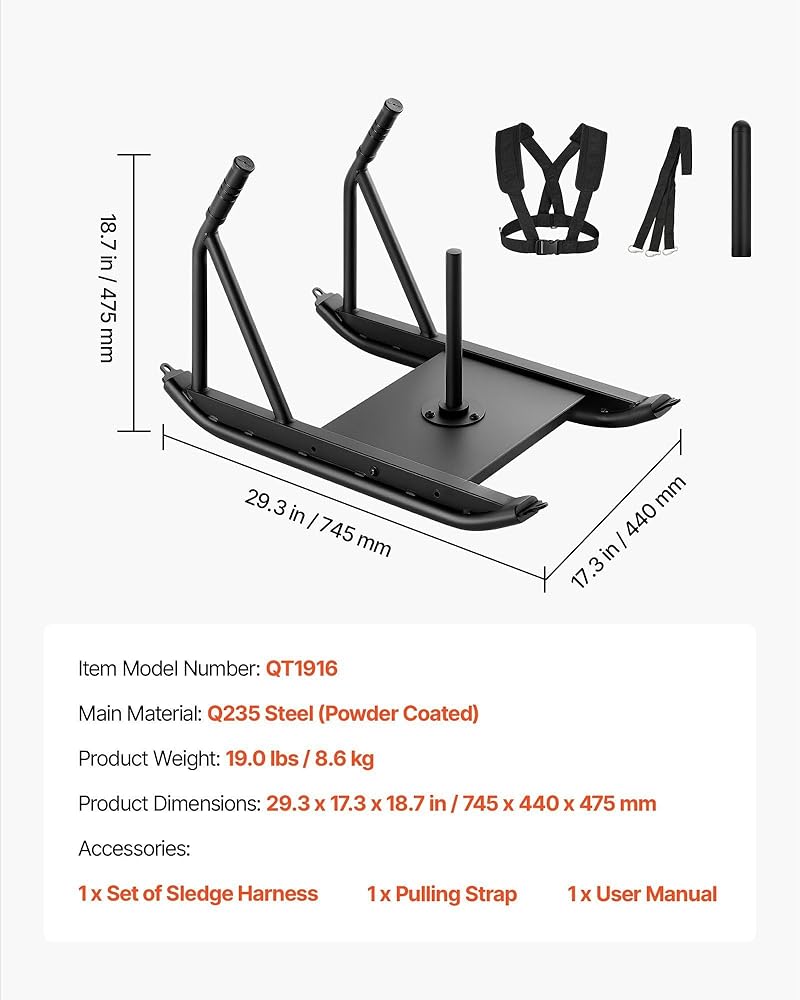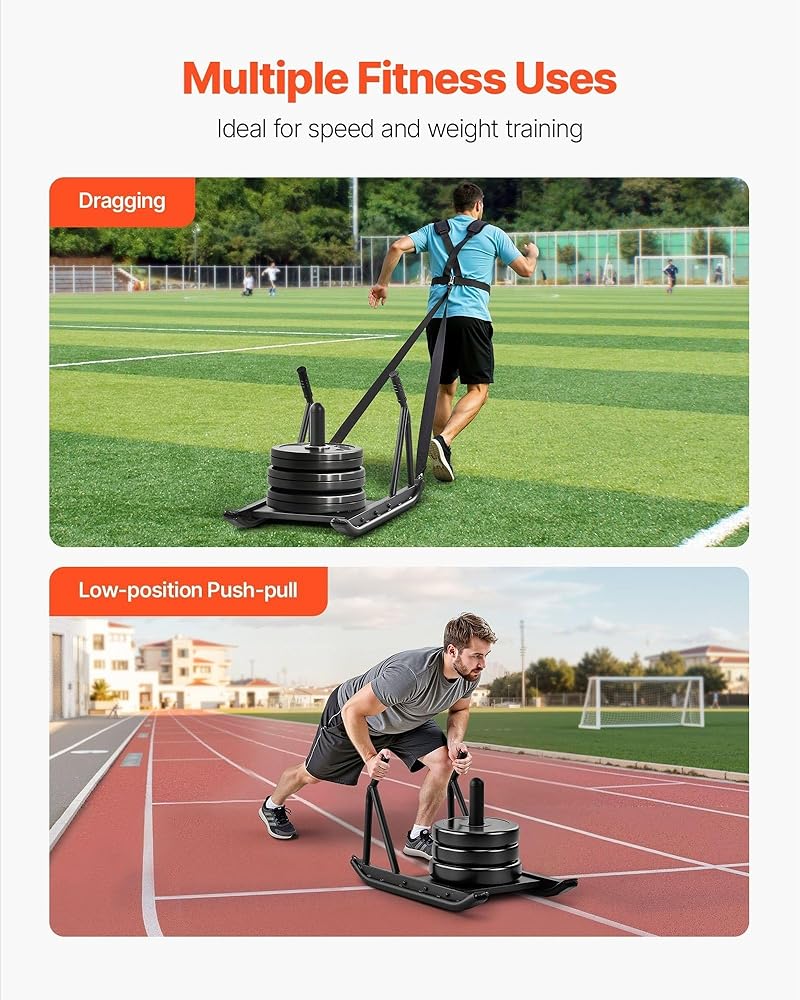 Fits 1 & 2 in Weight Plates: This fitness sled features 1 in and 2 in support bars with double metal sleeves for better load capacity. It works with standard plates, with a 2-inch bar for easy tube installation without reinstallation
