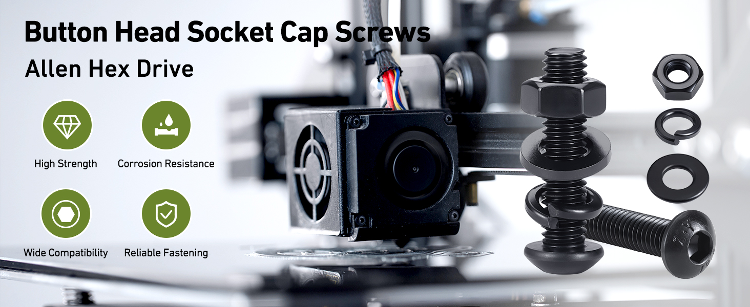 Button Head Design: Standard hex socket button head with smooth rounded finish, protects surfaces and hands, perfect for furniture, appliances, 3D printers, machinery and DIY projects.