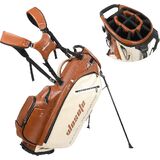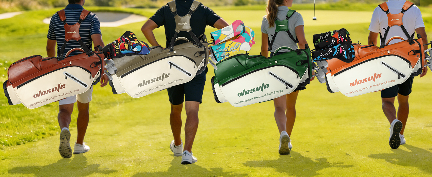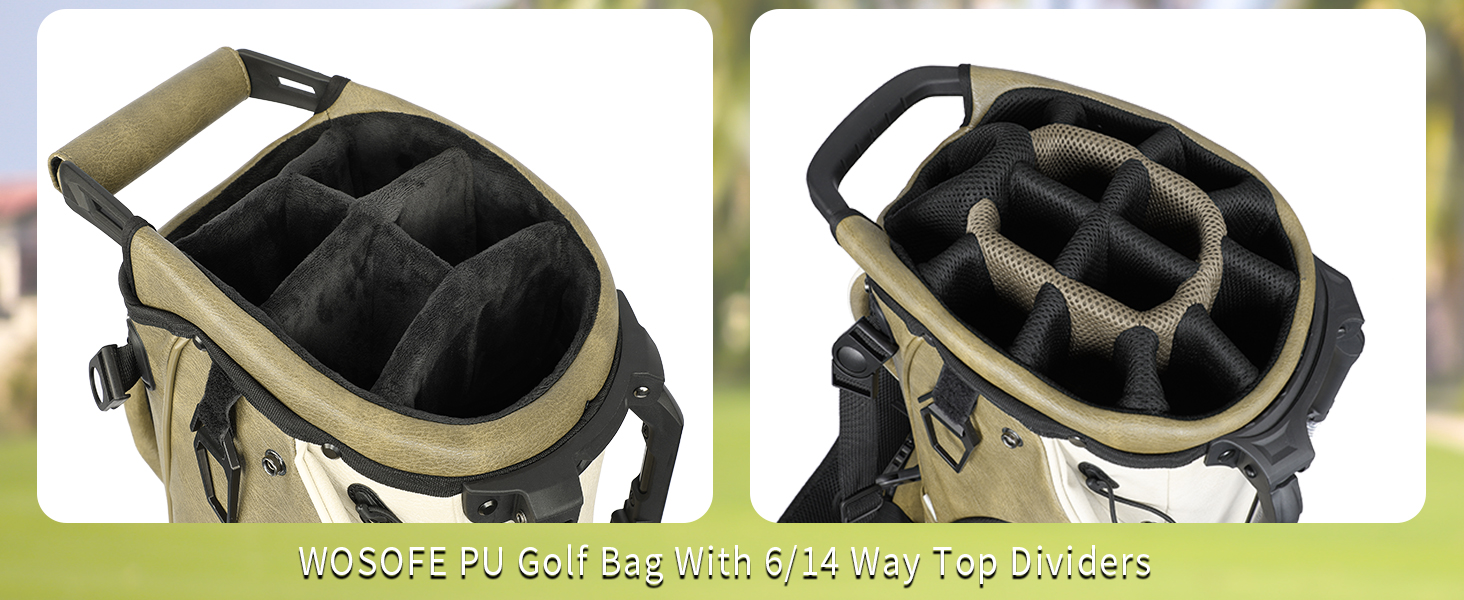 WOSOFE PU Golf Bag with 6/14 Way Top Dividers Automatically Adjustable Dual Straps Elegant Design for Men Women Pu Golf Stand Bag with Multiple Pockets