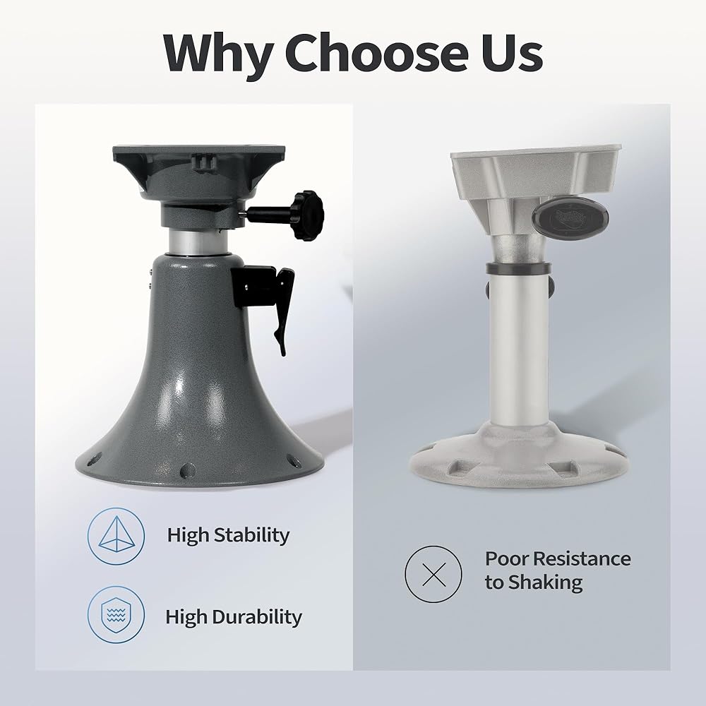 Strong adaptability:Height adjusts from 13 to 17 inches,360° rotation with locking knob make you view access to different areas of your boat Scenery.Perfectly suited for those needing a low-profile base.