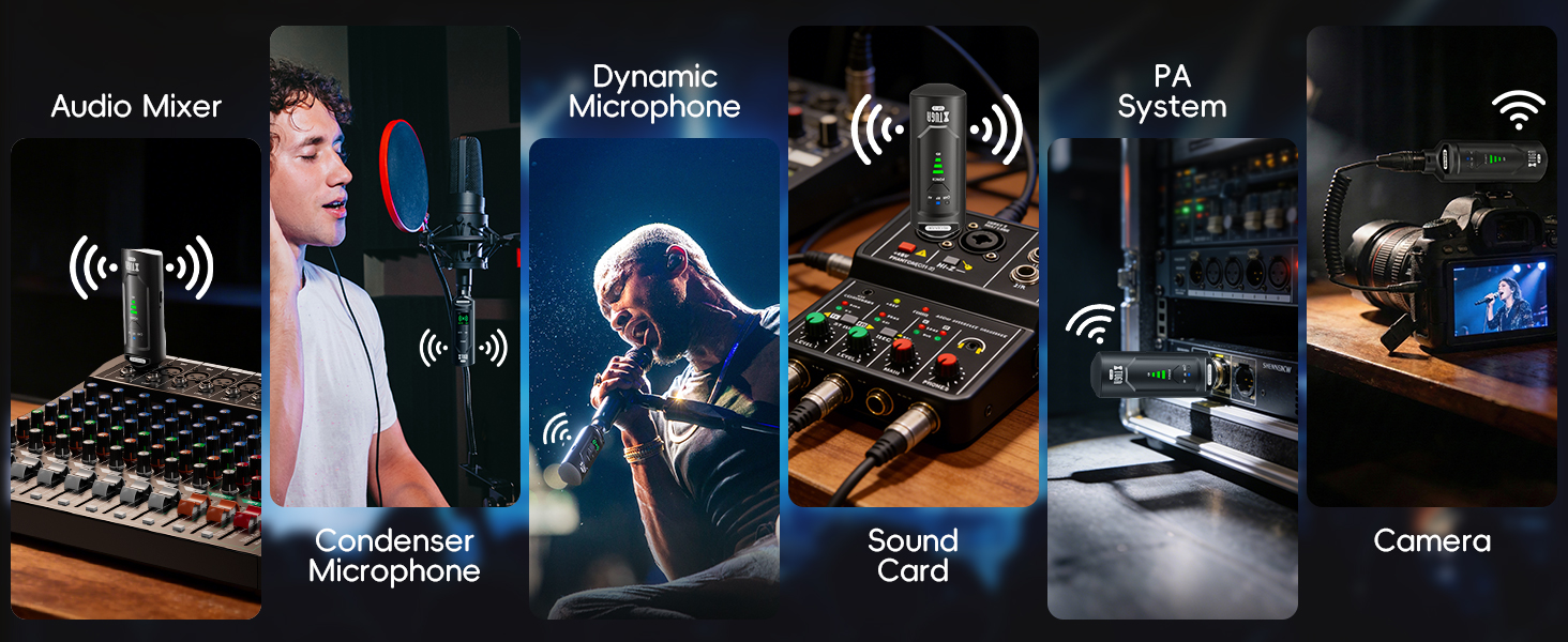 【Extended 164ft Wireless Range】: With a robust 164ft(50m) operating range and intelligent 2.4 GHz anti-interference technology, this xlr transmitter and receiver delivers consistently clear audio,empowering you to fully immerse in and own the stage,even in crowded wireless environments.