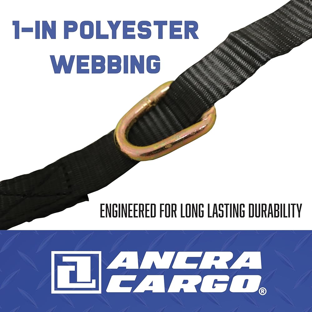 RUGGED MATERIALS & FINISH: Built from abrasion-resistant 1-in. polyester webbing with a gold chromate-coated ratchet and hardware to resist rust, corrosion, and wear, engineered for long-lasting durability in harsh outdoor or industrial use.
