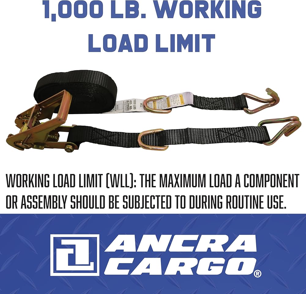 1,000 LB. WORKING LOAD LIMIT: Rated to safely support up to 1,000 lbs., this strap includes a safety margin equal to one-third of its break strength, ideal for securing heavy equipment, lumber, or bulky contractor loads during transport or storage.