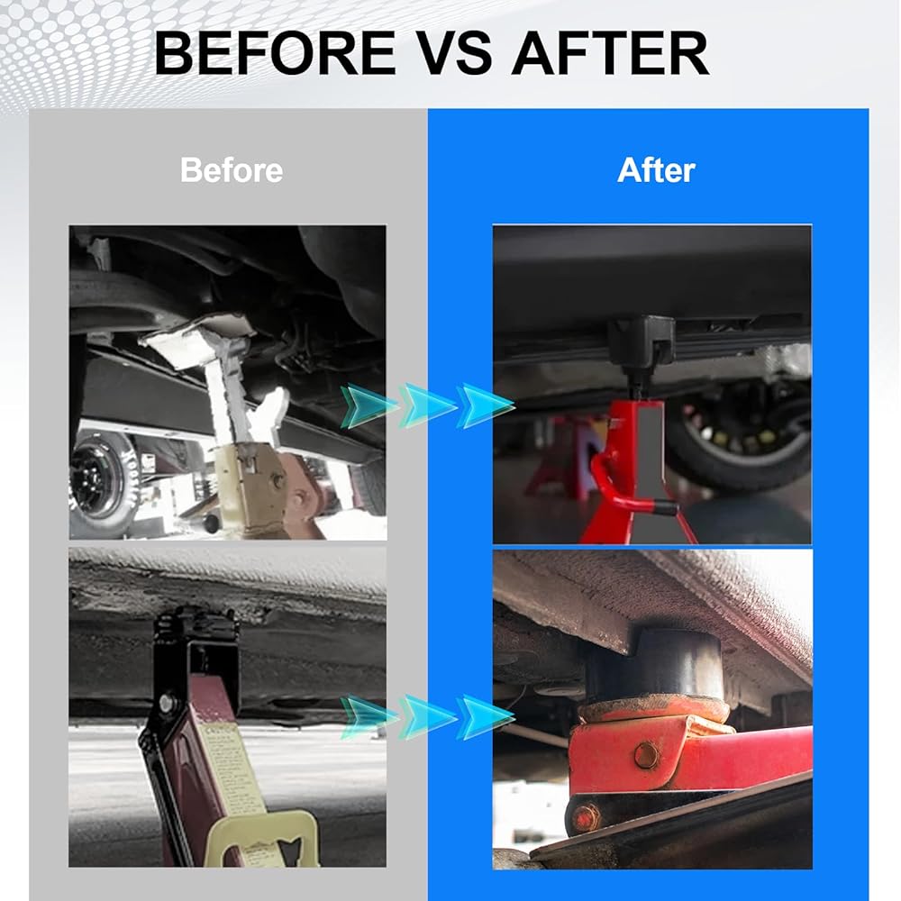 • Practicability:Designed to fit most floor jacks, our jack pad adapter is perfect for cars up to 3 ton, It also provides more cushioning and compression resistance to protect painted or coated chassis parts.