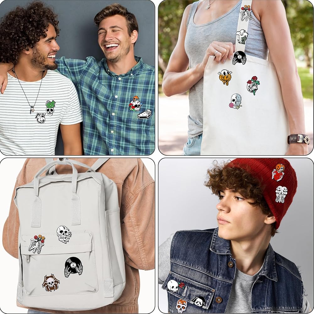 Halloween Pins set: you will get 25 different styles of skeleton enamel pins set, sufficient in quantity and complete in style, to meet the matching needs of your different costumes; You can also share it with your friends or family.