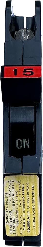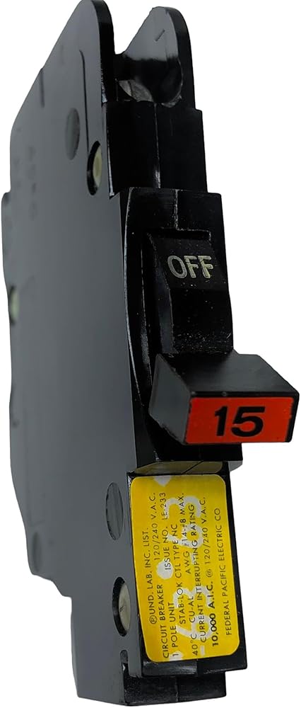 - 1- FEDERAL PACIFIC Challenger NC015 THIN STYLE (MAY BE RED OR BLACK HANDLE) STAB-LOK NC115 Circuit Breaker 1P 15 Amp NC15