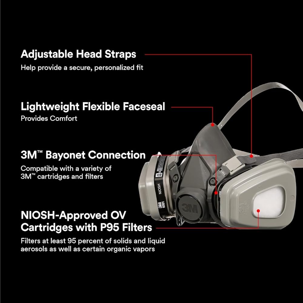 3M P95 / Organic Vapor Paint Project Reusable Respirator 6311, Large Size, NIOSH-APPROVED, Use For Professional Paint Spraying, Lightweight, Flexible, Thermoplastic Faceseal For Comfort (6311P1-DC)