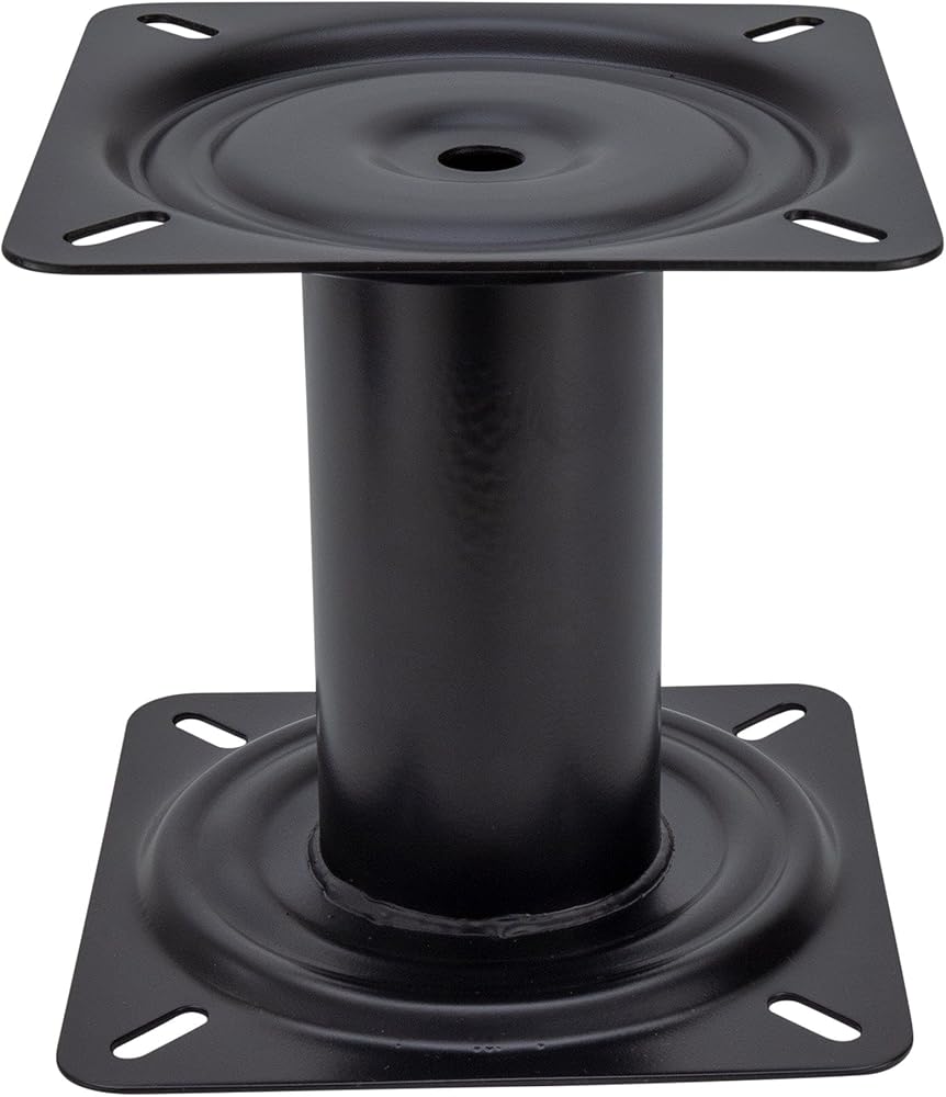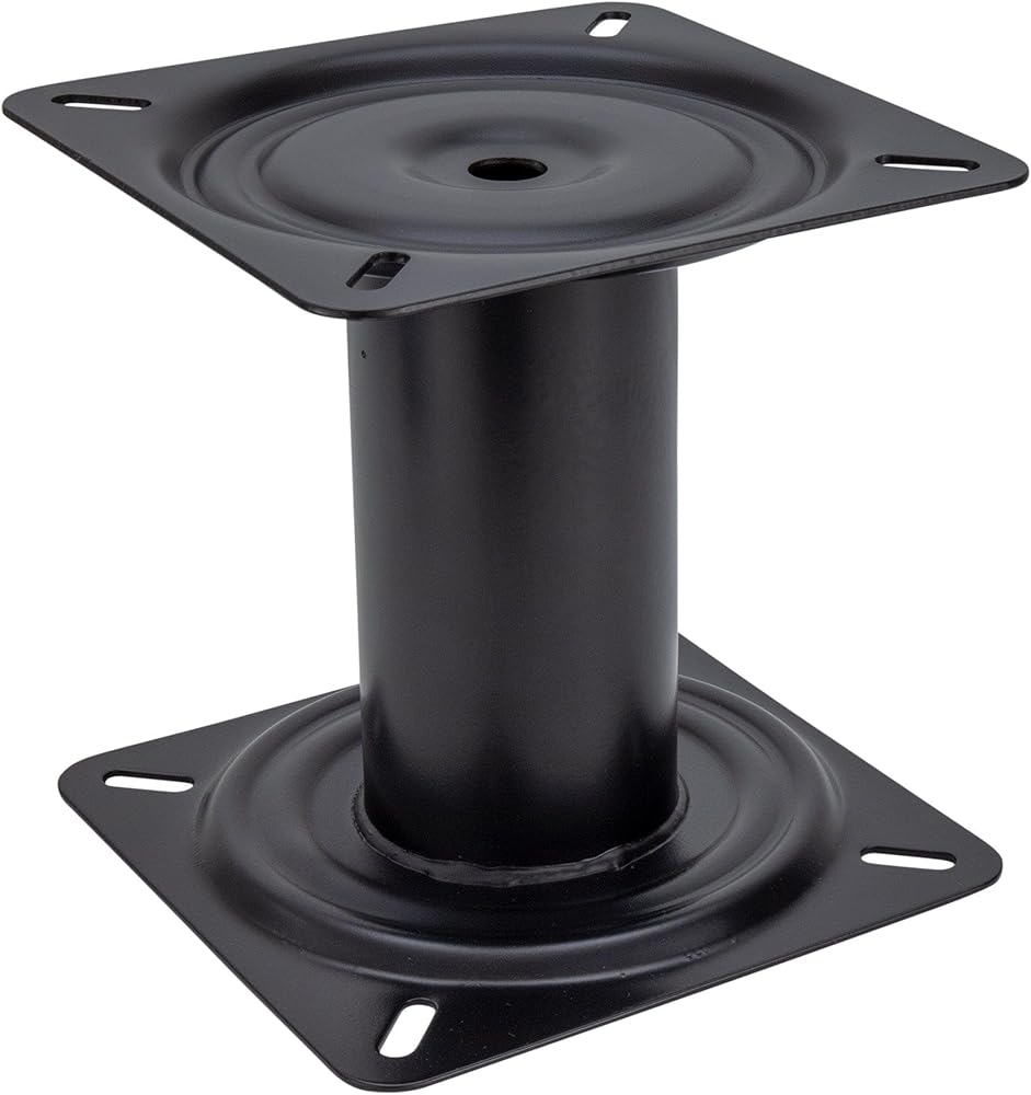 Fixed Height Boat Seat Pedestal 5-1/4" universal mounting hole pattern. Black powdered coated steel construction. Fits all seat brands or swivels with oblong mounting holes. Strong Steel Construction Mounts to most boat seats Pre-Drilled hole pattern to mount seat or hardware Corrosion and Rust Treated
