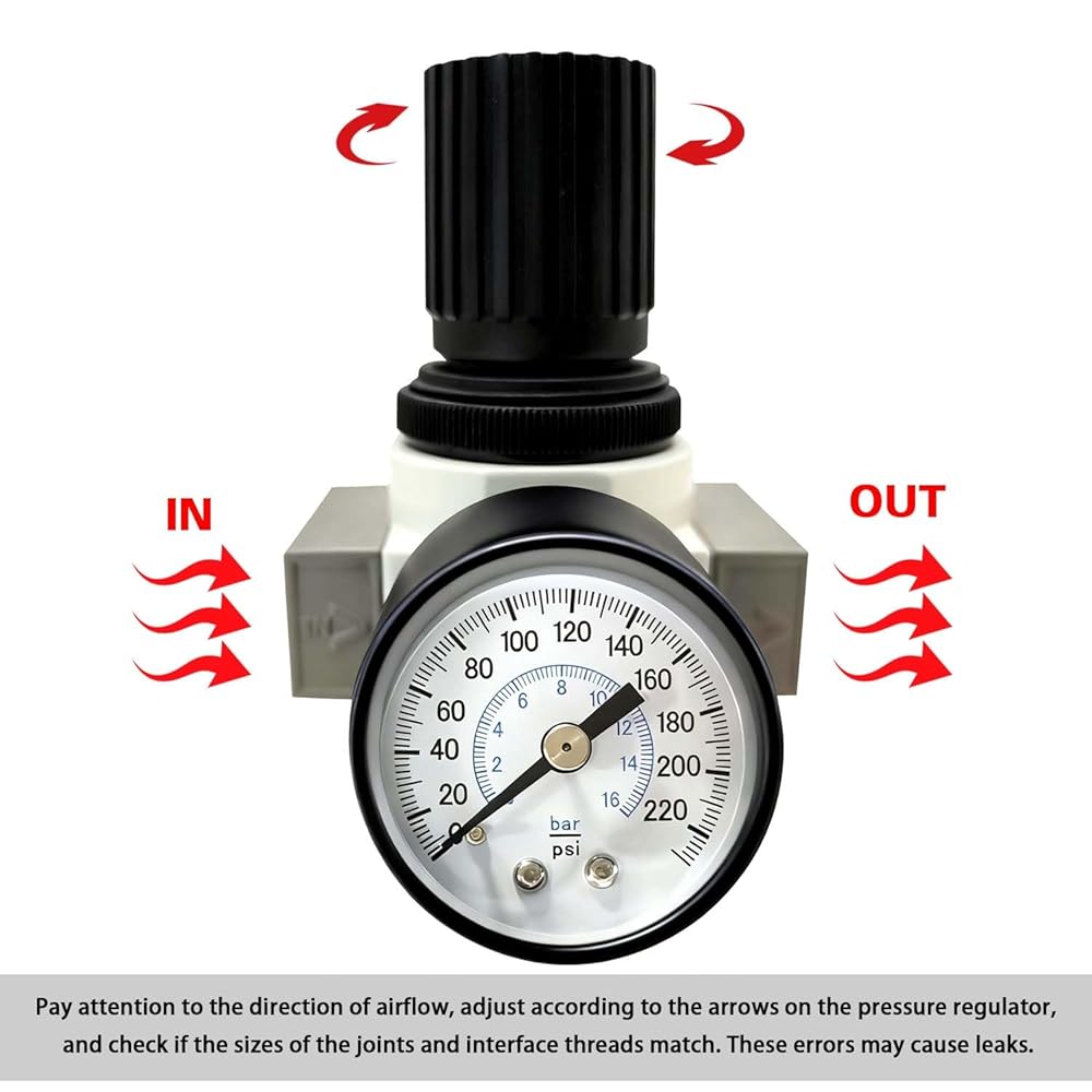 The regulator's self locking mechanism ensures stable pressure adjustment, preventing external interference. Its modular design allows flexible installation and pressure adjustment. Proper installation requires cleaning ports, avoiding reverse flow, and ensuring the water cup is downward to facilitate drainage.
