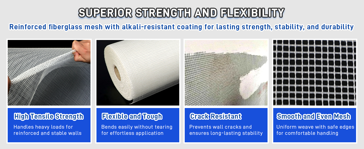 【Crack-Resistant & Reliable Mesh】Engineered to resist alkali reactions from cement and gypsum, this fiberglass mesh cloth maintains structural integrity under prolonged exposure to moisture, heat, or harsh conditions. Fire-resistant and corrosion-proof, it strengthens walls, ceilings, and floors, effectively preventing cracks and reducing costly maintenance, ensuring reliable performance for both indoor and outdoor applications.
