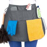 Like a Cleaning Caddy: Holds your phone in the apron, spray bottles, duster, cloths, and everything else, so you stop forgetting where you placed the last item.