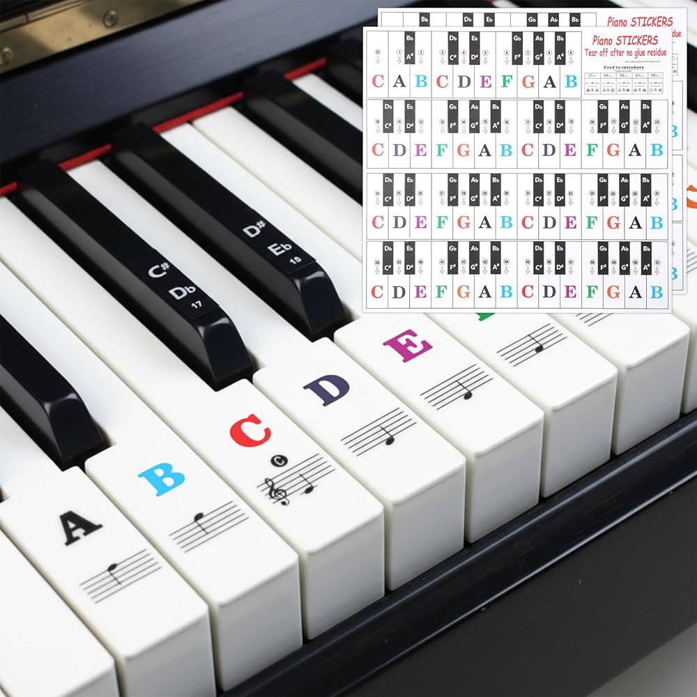 【Enhanced Visual Learning】Featuring large, bold, and colorful letters and numbers, these piano key stickers are exceptionally easy to read, which accelerates note recognition for beginners. The high-contrast, colorful design captures the attention of new learners, transforming the abstract layout of the keyboard into a clear, visual map. This method supports faster memory of key positions and note names, building a solid foundation for reading sheet music and understanding musical theory.
